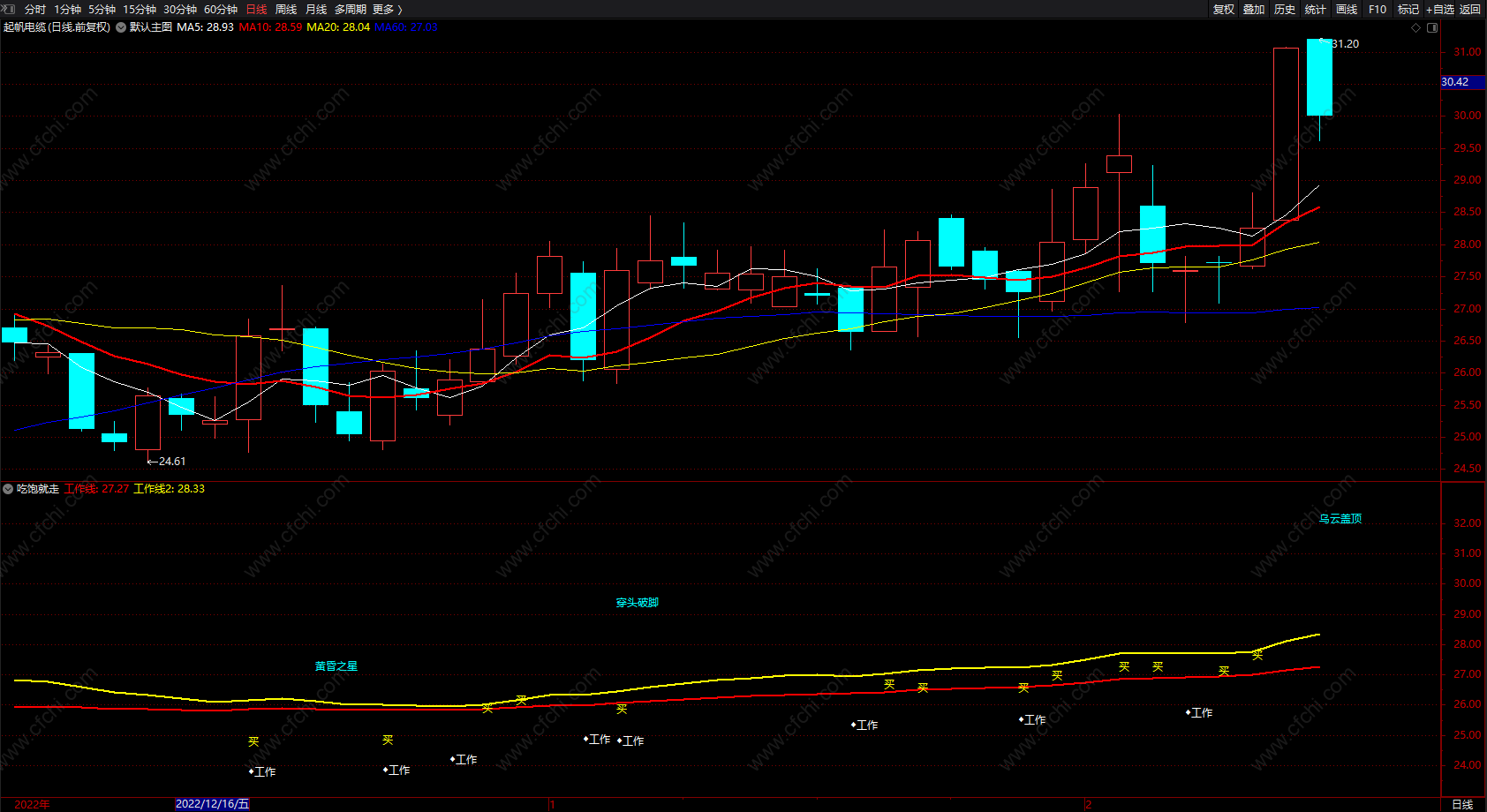 DRAWTEXT(乌云盖顶,H*1.03,'乌云盖顶'),COLORCYAN;