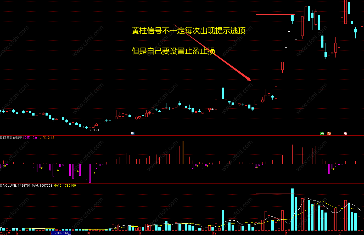 4、黄色柱体不一定每次出现,介入获利如果跌破五日可离场,自己设置止盈止损即可。