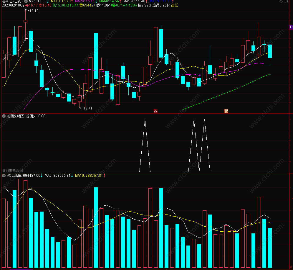 前期强势,下跌回调翻红,触及算法出信号,但是后面我们不知道,所以要求操盘的朋友具备一定的盘面经验判断。龙回头弱转强必须要有量有价,无量说明当前热点不在。可能只是大盘好止跌罢了。龙回头当天最好有4个点以上的涨幅。