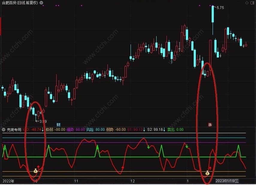 财富池指标公式网(www.cfchi.com)提醒您:指标公式是通过数学逻辑角度编写而来,仅是股票分析环节中的一个辅助工具,对股票选股效率和分析便捷上起到一定的作用,股市是具有不确定性和不可预测性的,请正常对待和使用指标公式!