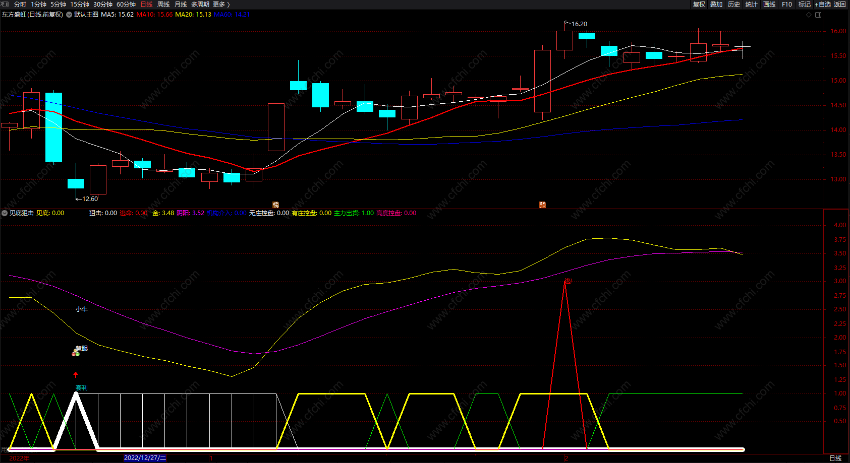 见底狙击小牛控盘指标 通达信抄底逃顶买卖提示 副图 源码