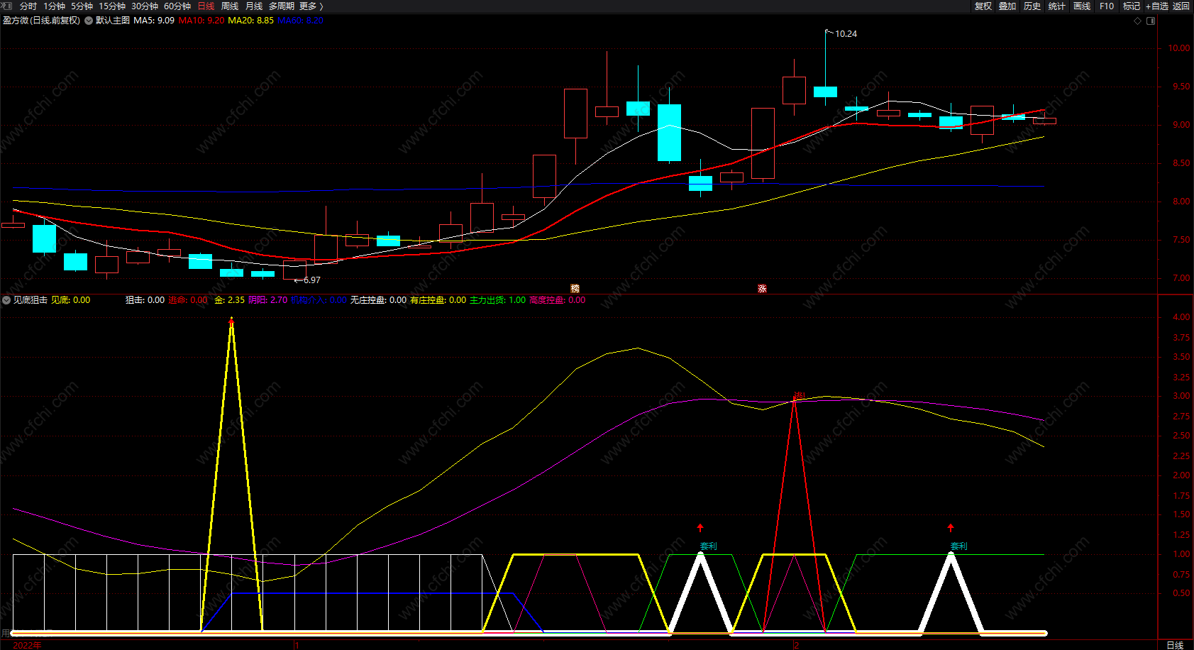 精华版:分时主力吸筹:增加了买入点提示,效果不错。手机电脑都可用。