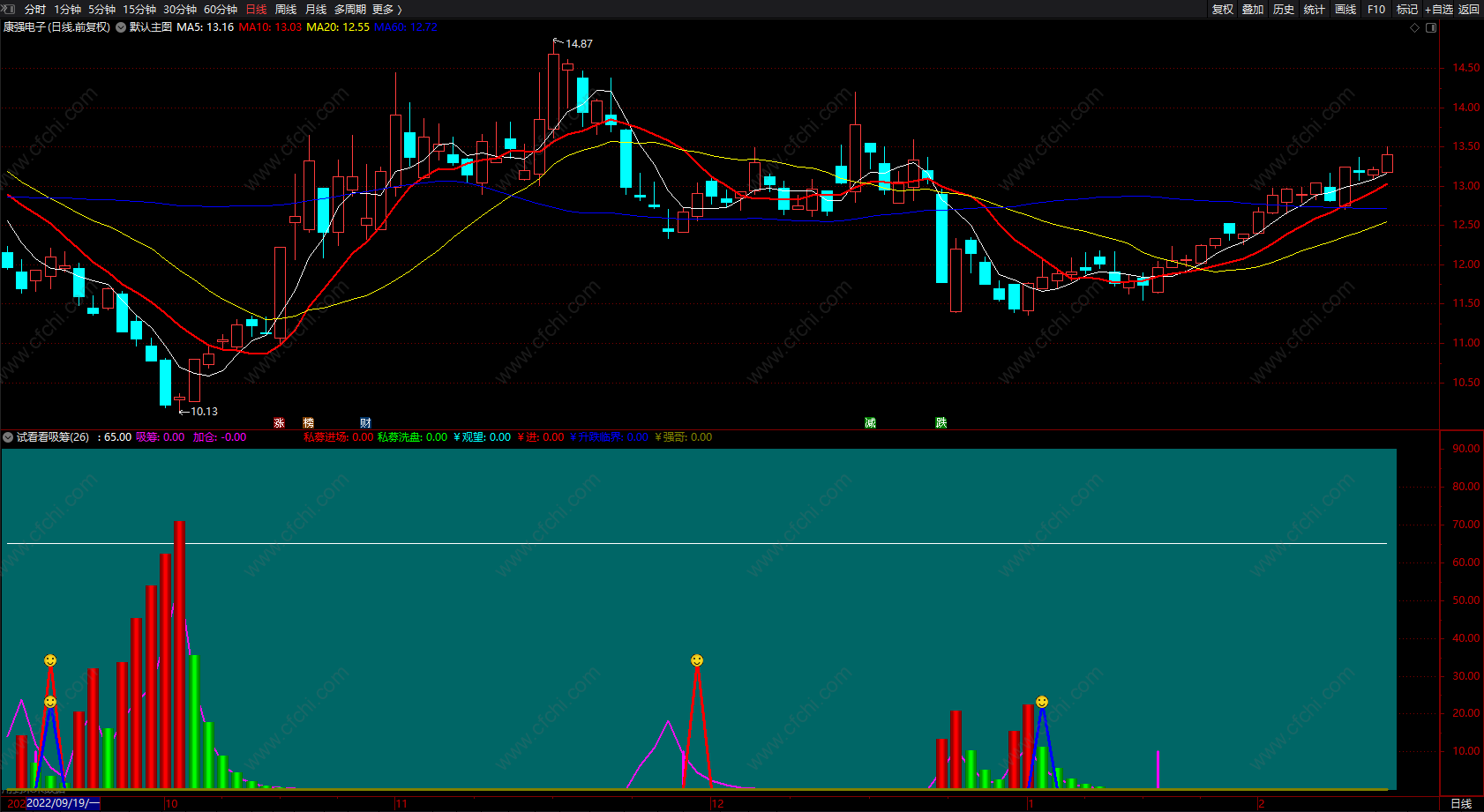 精华版:分时主力吸筹:增加了买入点提示,效果不错。手机电脑都可用。