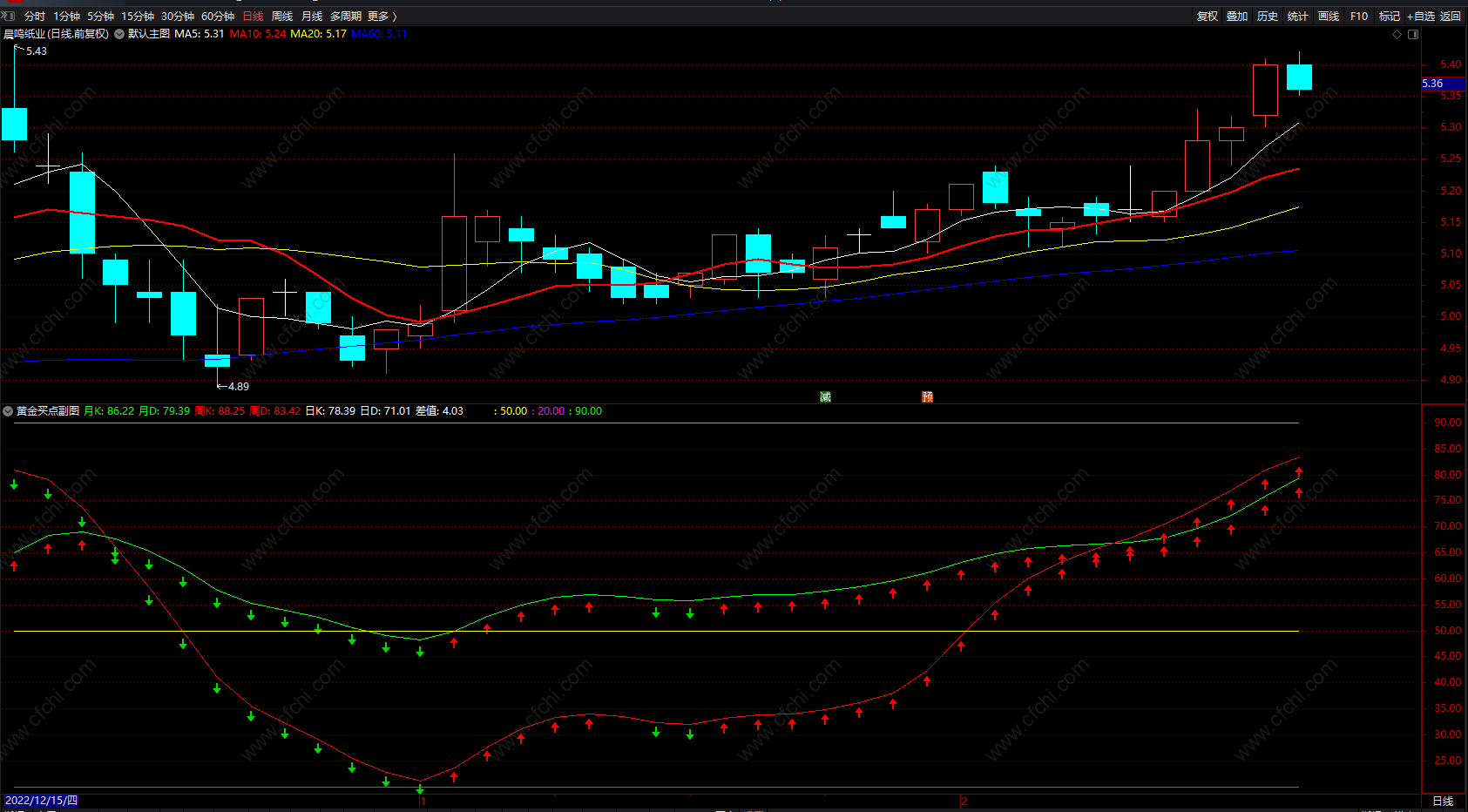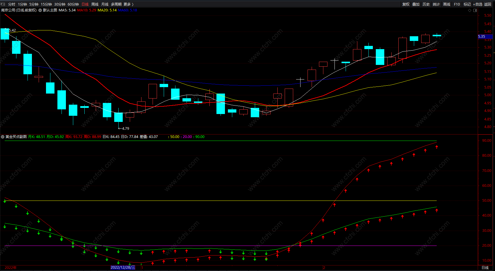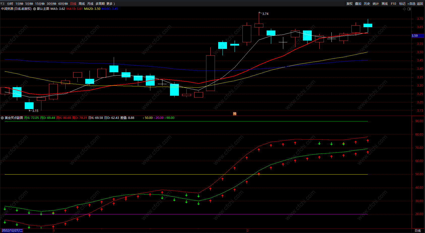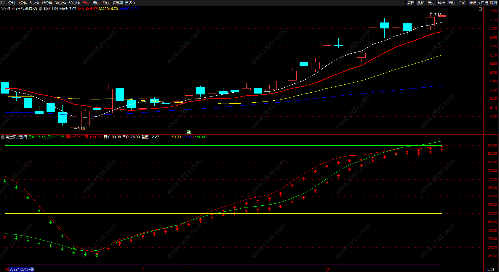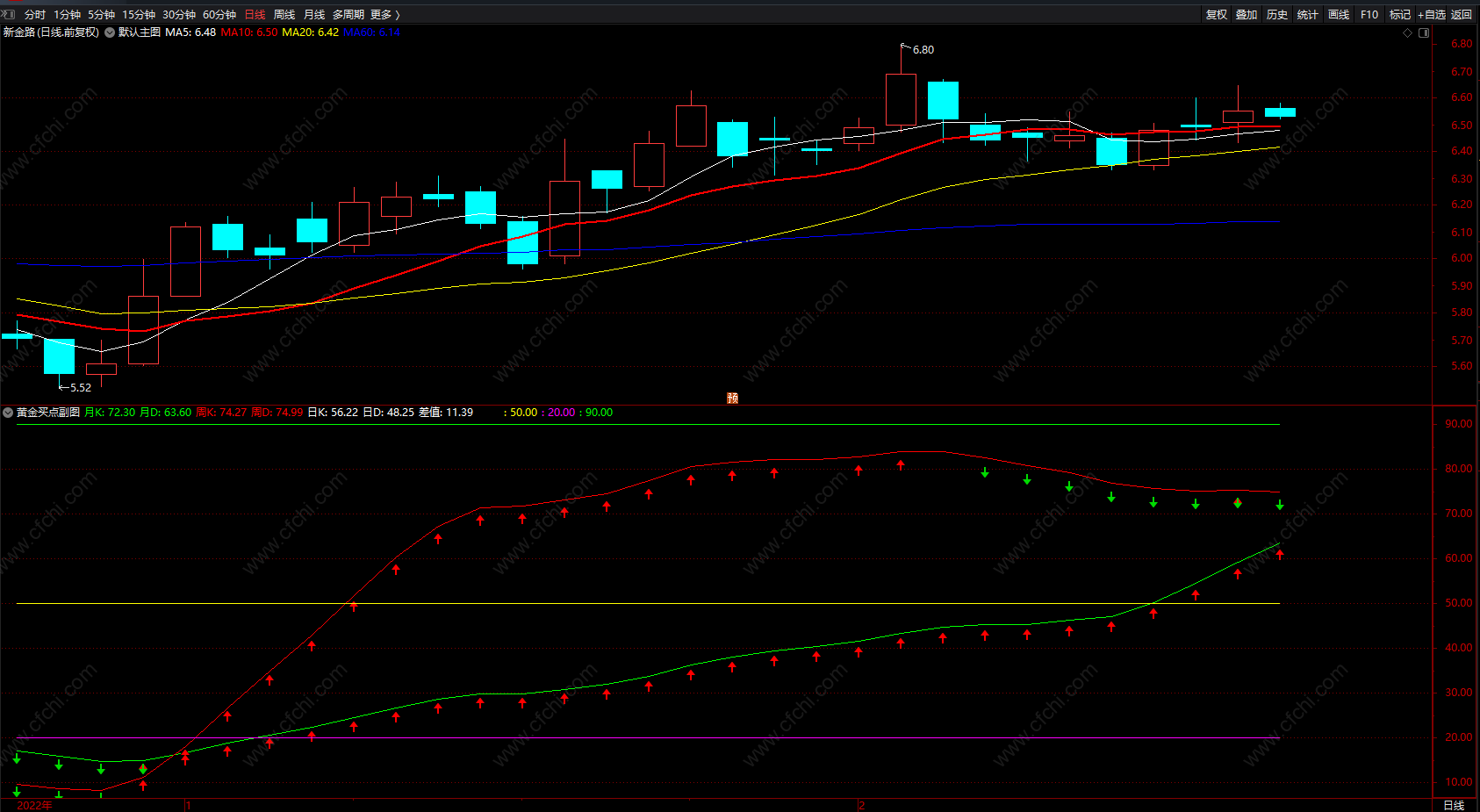 (黄金买卖点提示 通达信绿箭头卖红箭头买指标公式 无未来 副图)