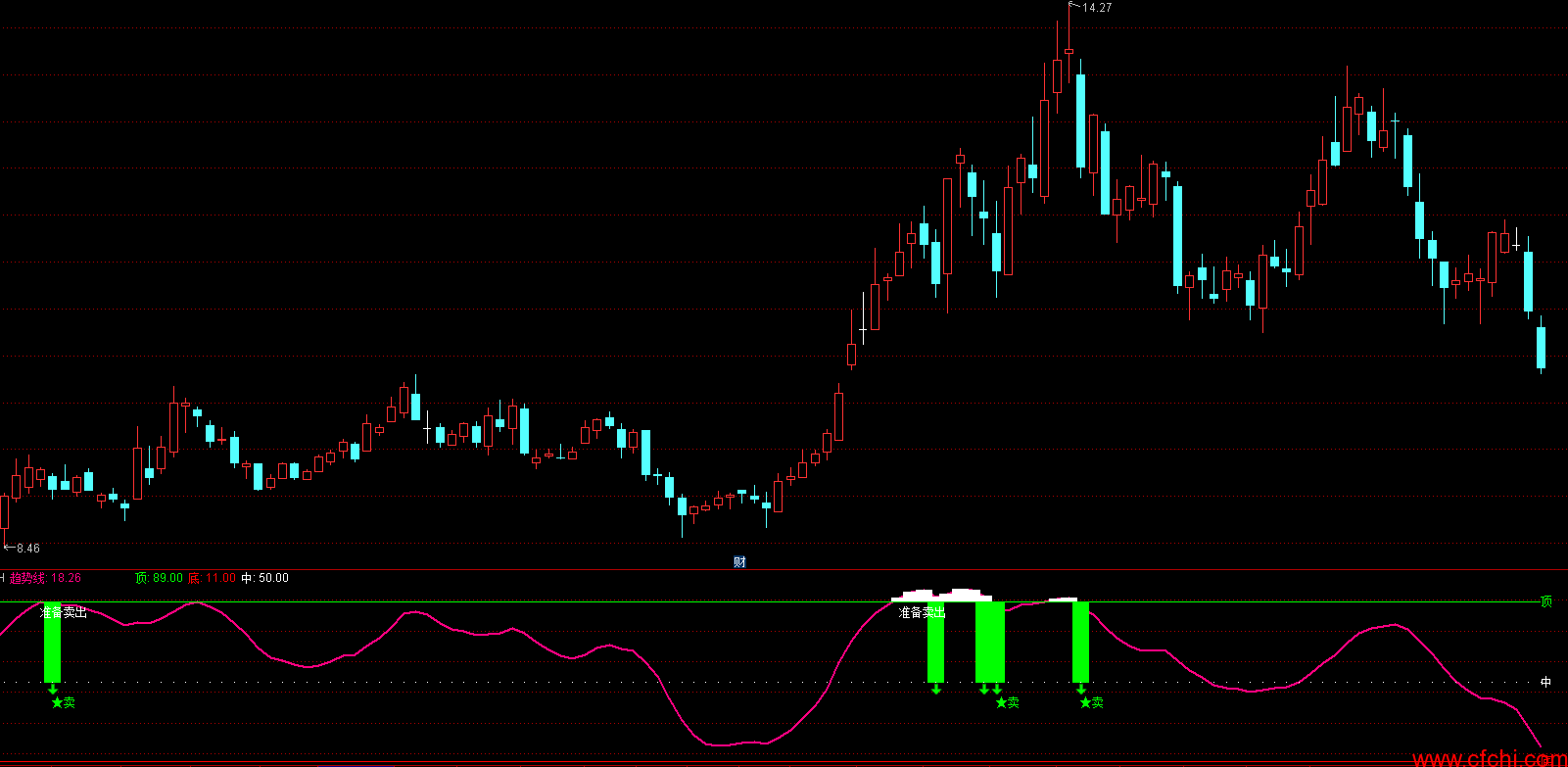 下单卖出:STICKLINE(DD=1 AND C>中线,89,50,5,0),COLORGREEN;