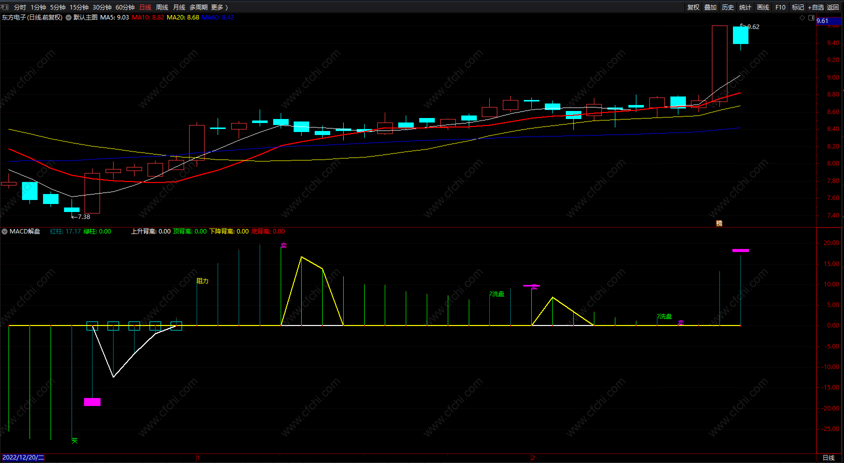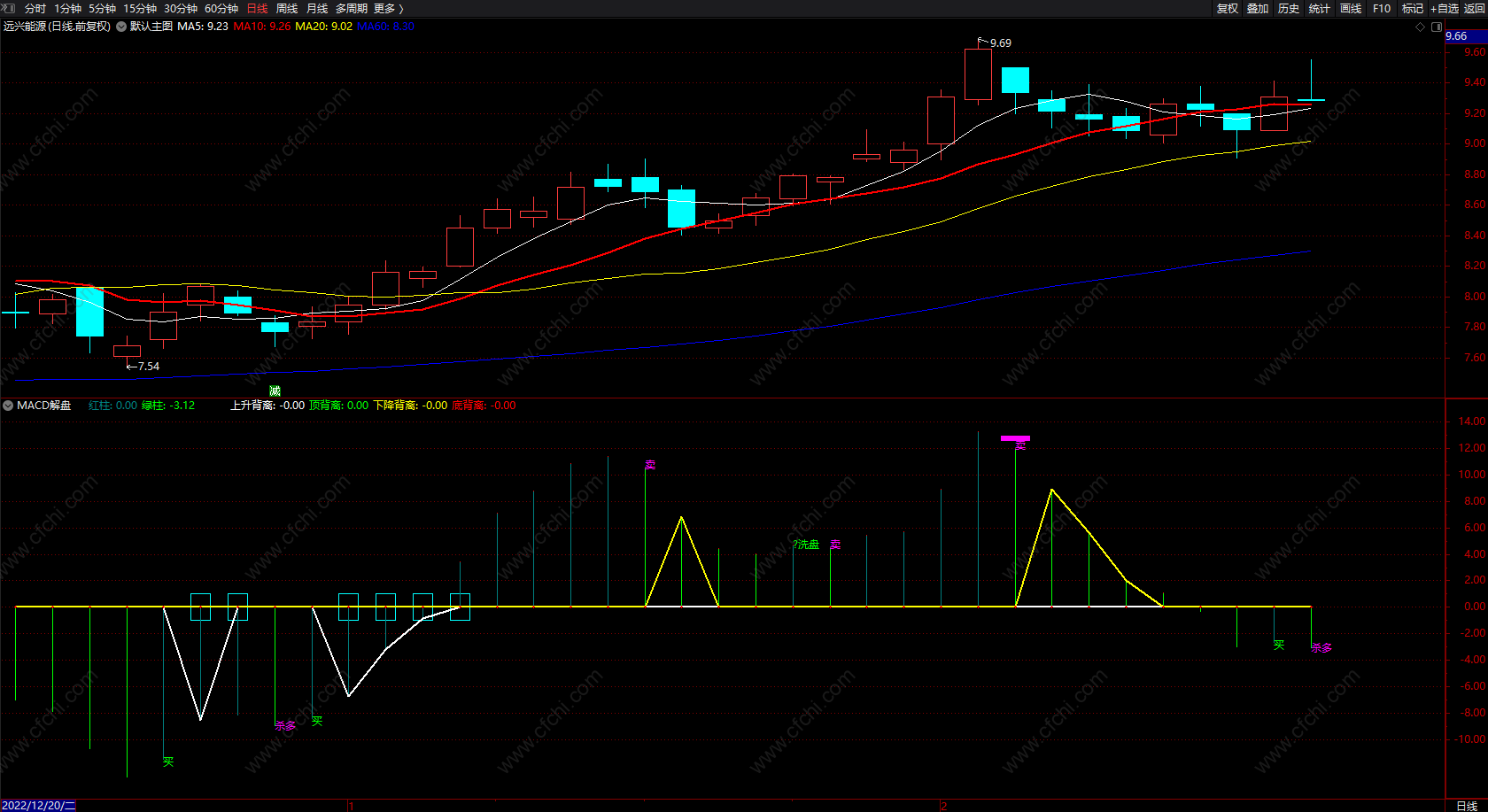 (MACD解盘 通达信自动提示买卖点指标源码 无未来 副图 源码)