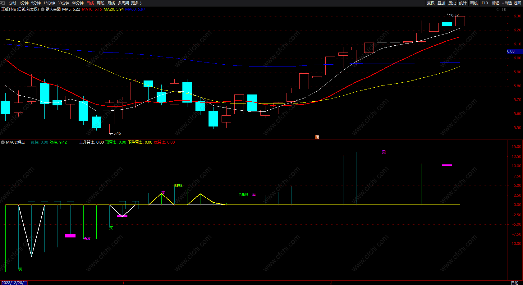 上升背离:(CC AND EE)*1.5*(DIFF50-DEA50),LINETHICK2,COLORWHITE;
