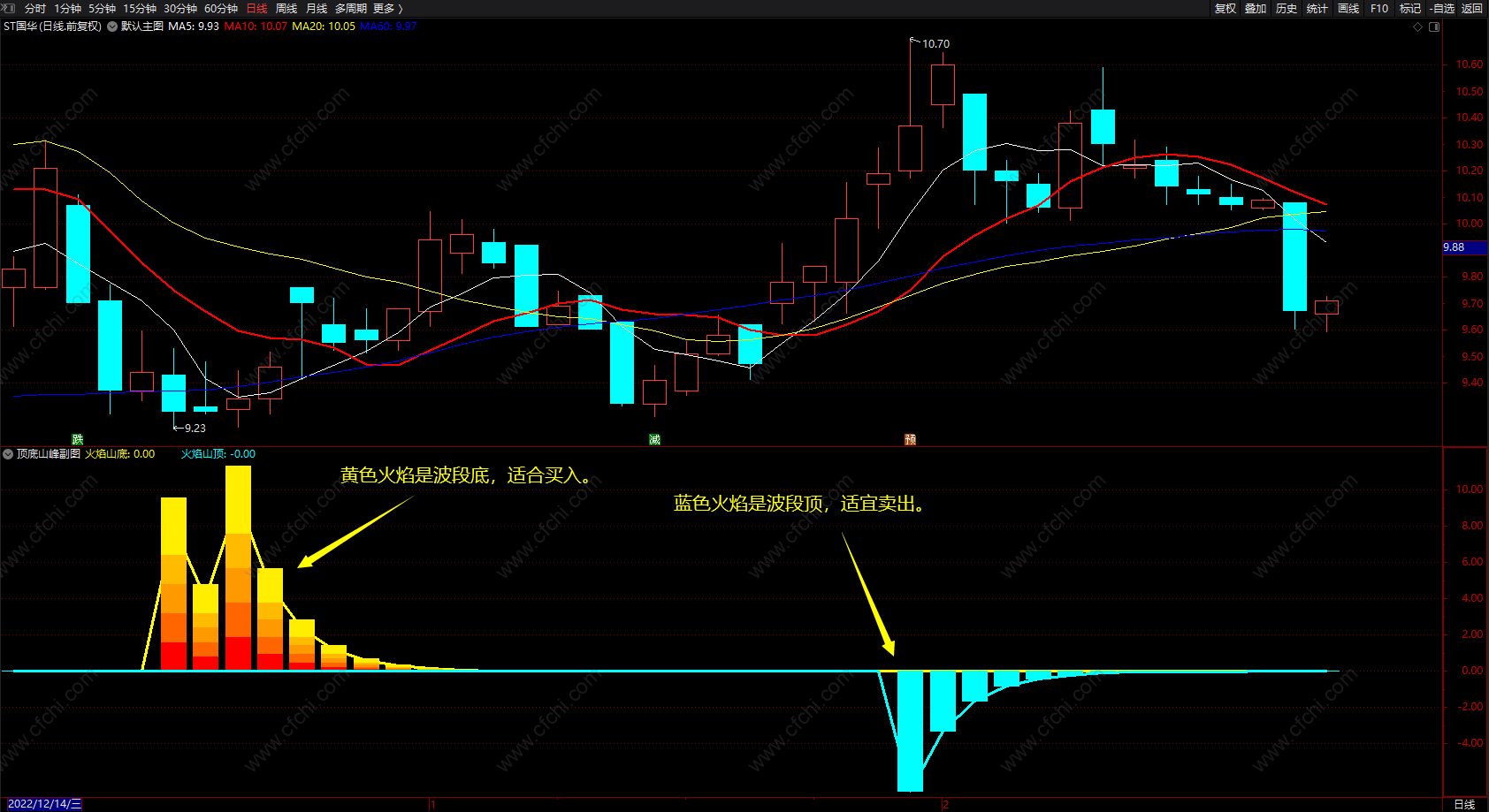 (短线波段逃顶副图指标 通达信黄色火焰是波段底适合买入指标公式 无未来 源码 )