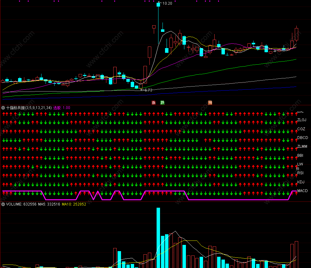 【十指标共振】通达信十指标共振十个指标金叉共振捕捉强势牛股