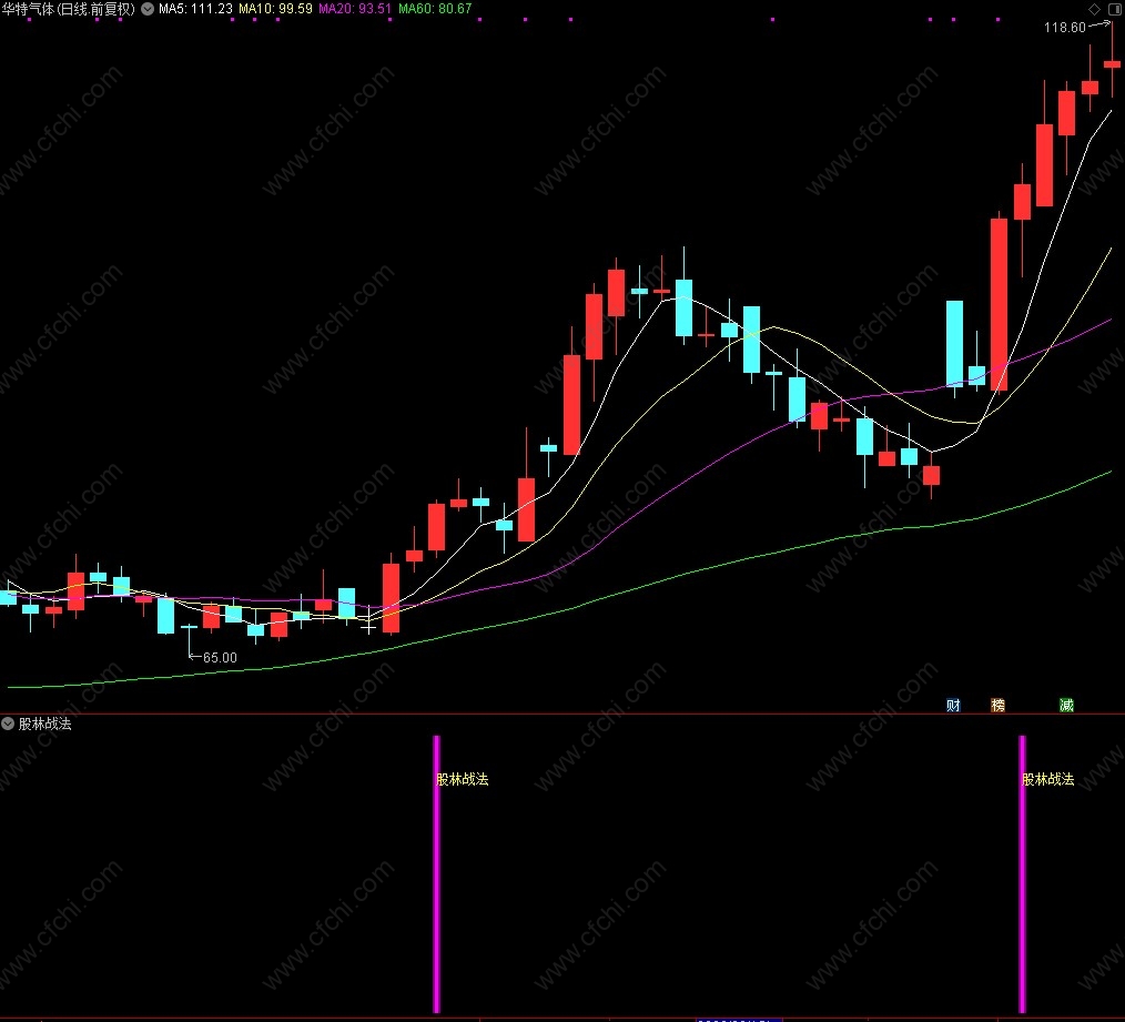 (通达信【股林战法】副图选股指标,上升趋势中,根据信号出现来抓强势票!)