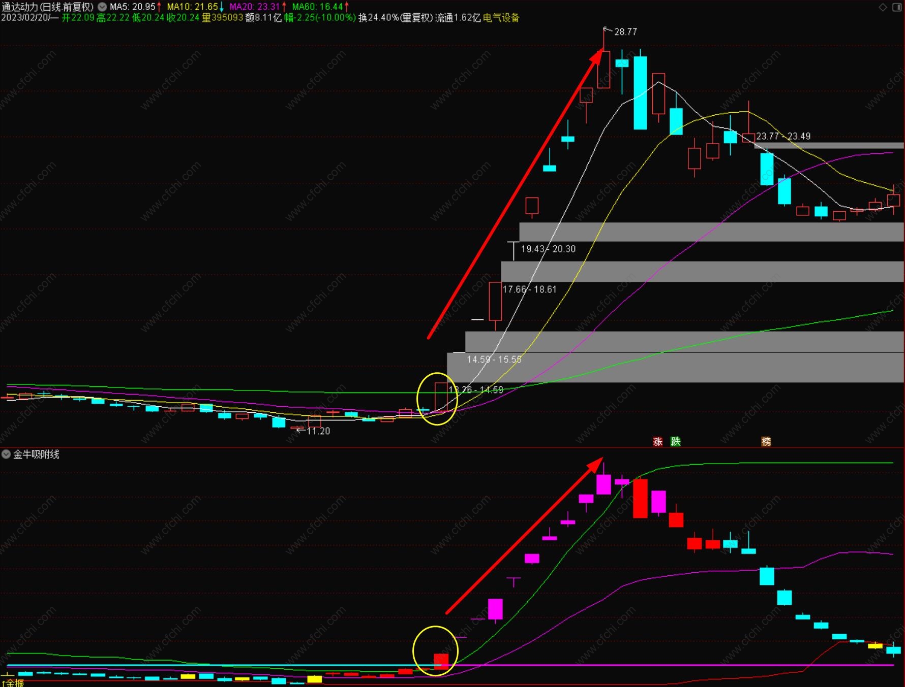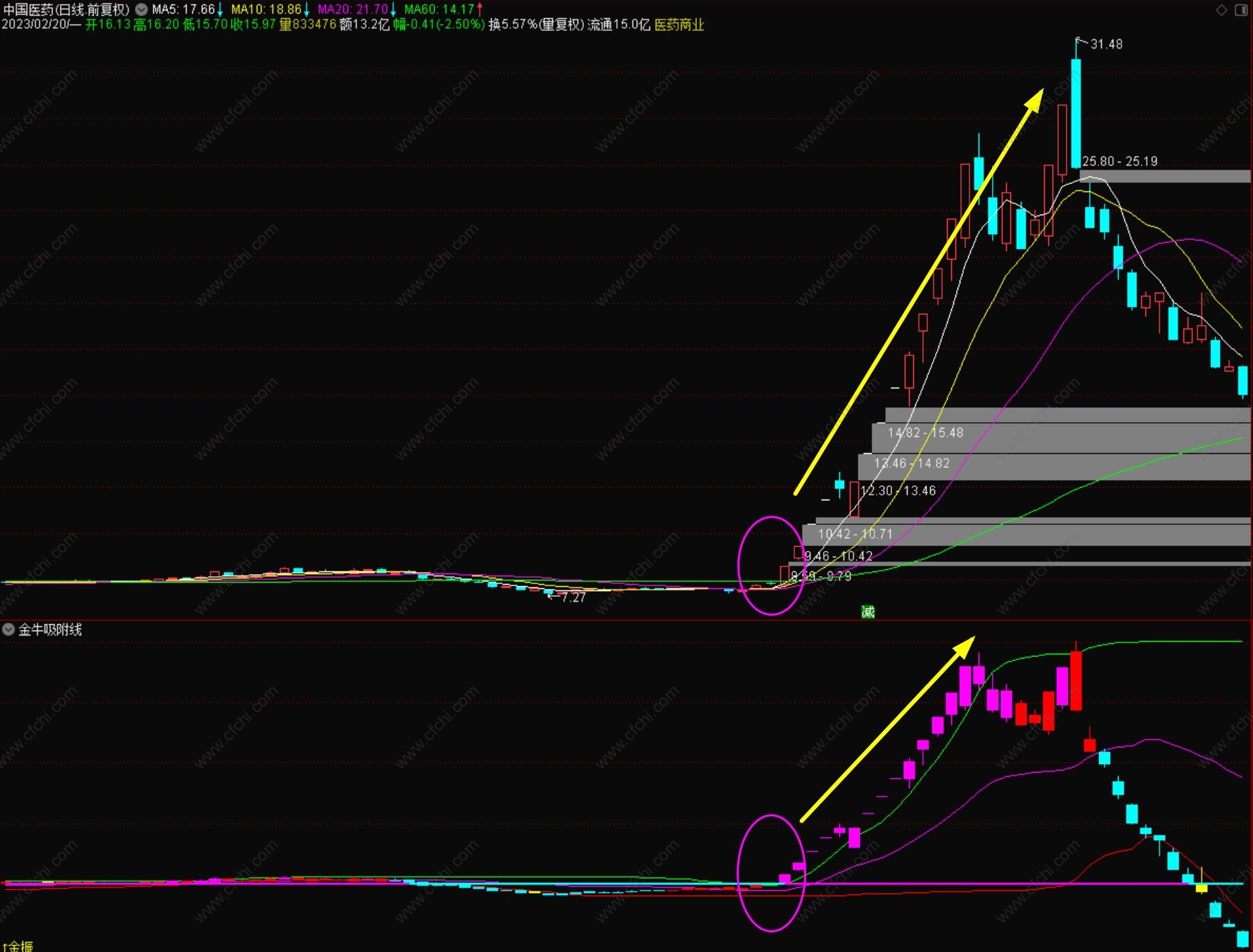 (通达信至尊版《金牛吸附线》副图指标源码、手机版通用,副图、选股源码指标分享!)