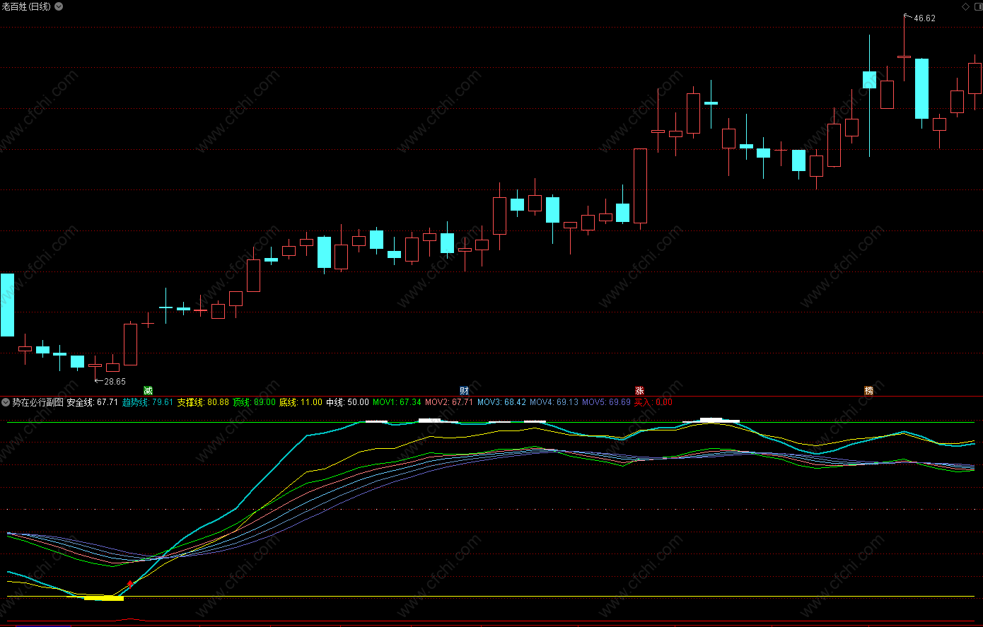 通达信金色K线持股,蓝色K线持币 ;下跌通道抢反弹,最好是金K线开始出现和道线红色