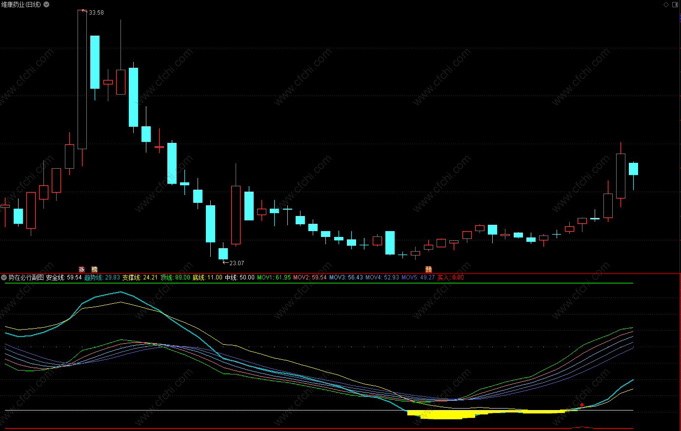 通达信〖顶底拐点预警〗结合短期跌幅和形态识别寻找低吸高抛时机