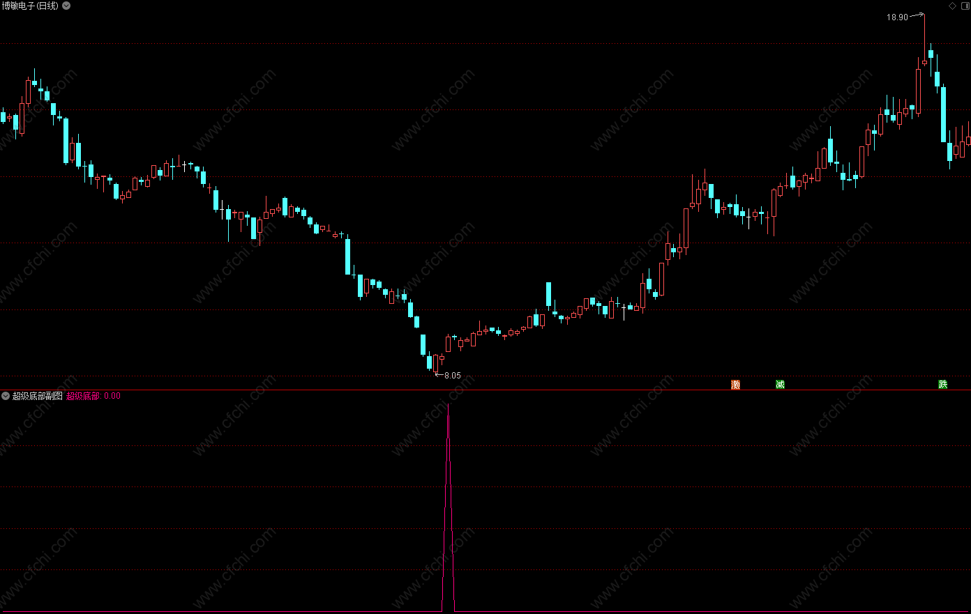 通达信〖顶底拐点预警〗结合短期跌幅和形态识别寻找低吸高抛时机