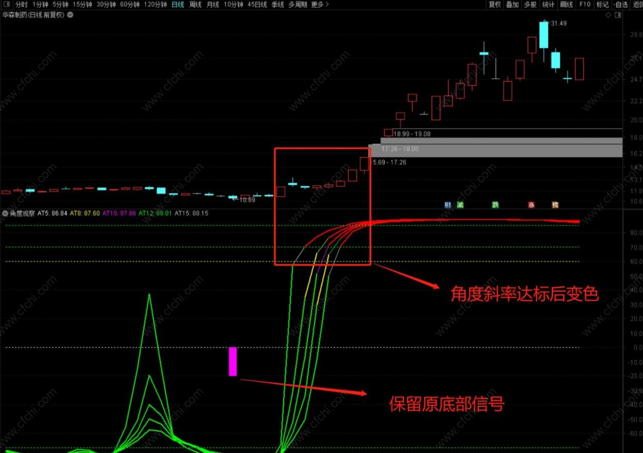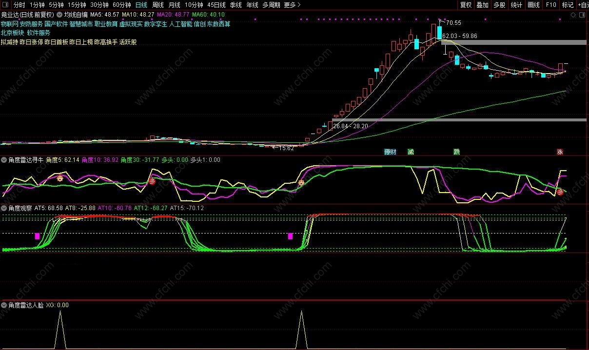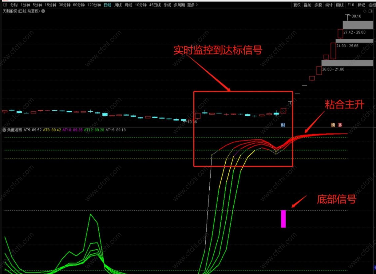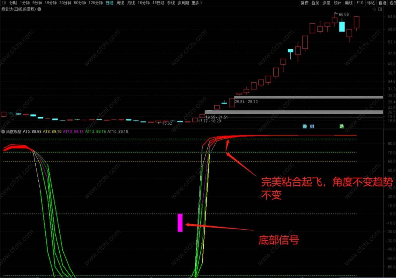 (通达信《角度雷达》+《角度观察》副图选股优化信号,主做弱转强!)