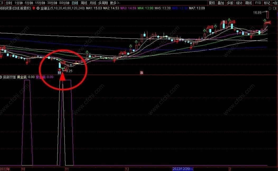 经过反复验证得出了一个相对合理的结论,那就是黄金底和紫金底双底重合叠加在一起时,相对底部的确认更加充分,此时介入应该是相对阶段性低点。当然,什么事情都不是绝对的,最好能用其它指标来辅助。