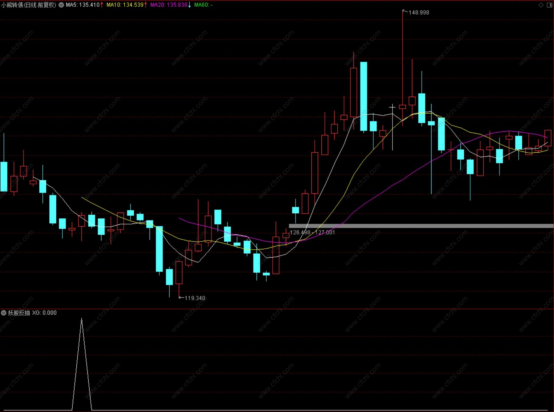 (妖股反抽点抢钱战法 ,抓妖股调整后反抽选股的指标 ,股票、可转债、手机可用源码指标分享)
