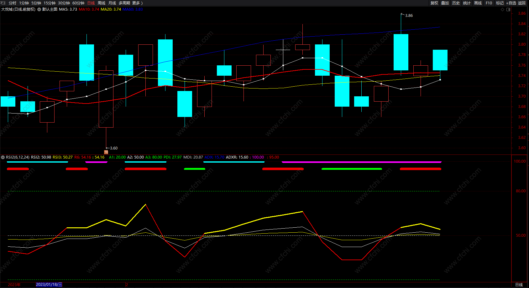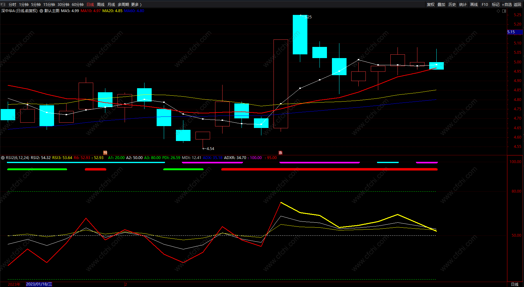 2.RSI 以50为中界线,大于50视为多头行情,小于50视为空头行情;