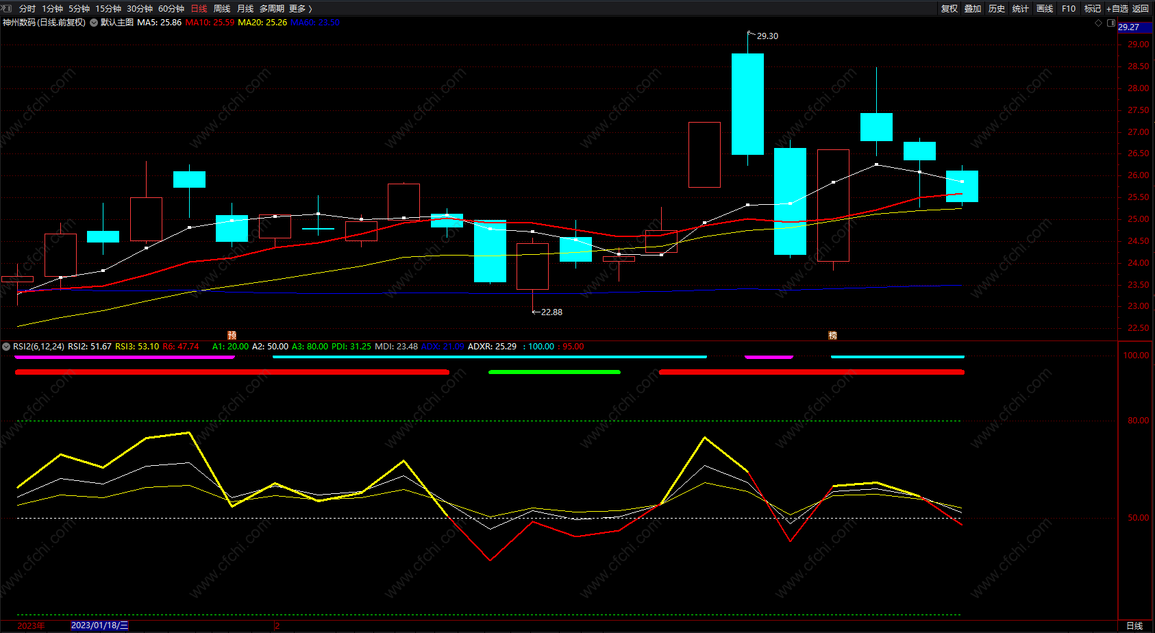 1.RSI>80 为超买,RSI<20 为超卖;