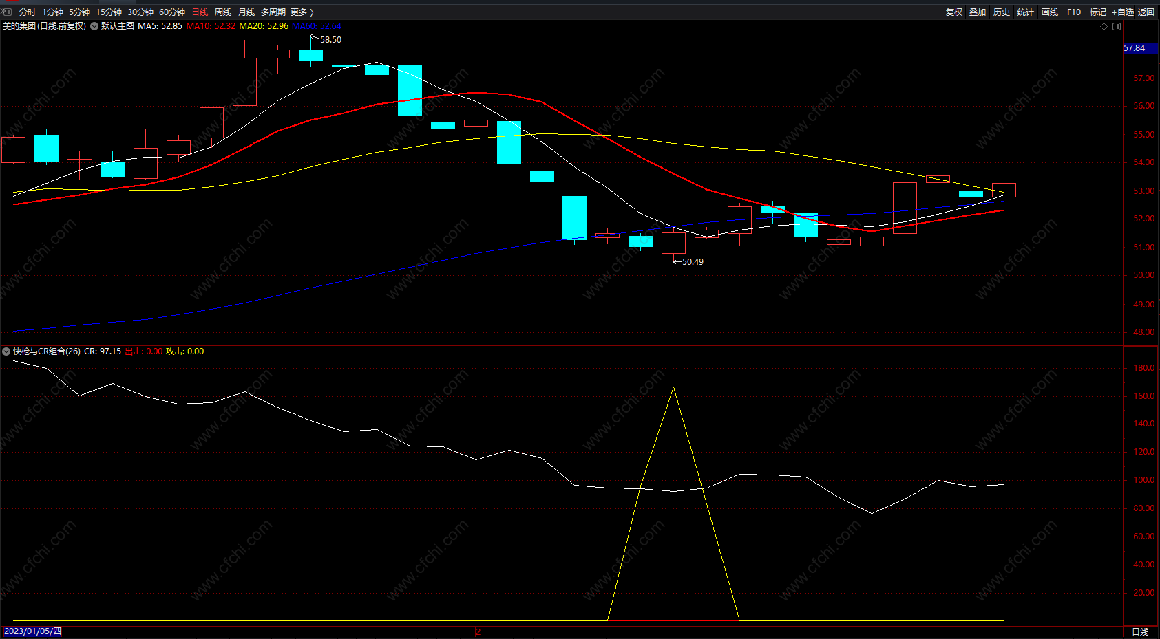 (快枪与CR组合 通达信短线买卖指标组合 副图 指标 无未来 源码)