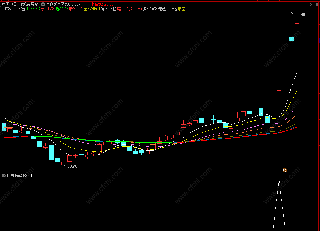 该指标一出信号,只要是当天的热点或是换手率达到5%以上都可以考虑介入。大盘好,第二天或大涨,大盘不好,第二天或第三天一般有短线机会。重要的一点。用这个指标看盘操作。不能操作盘子太大的个股。10个亿以上的个股信号就要考虑一下了。