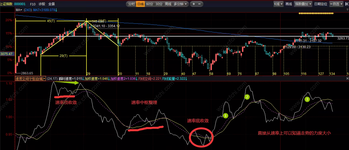 (【益盟操盘手】速率空间副图指标,顶底成型会出现对应的速率收敛,源码分享!)