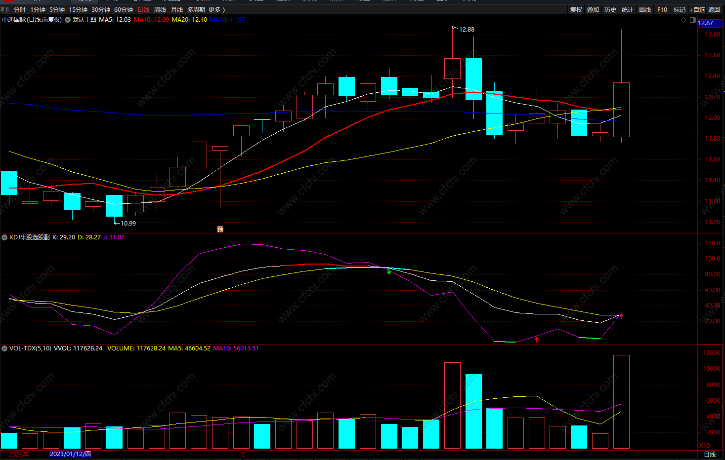 KDJ牛股买入点选股指标,副图玫红色线上穿,红箭头买入,玫红色线下穿 绿色箭头卖出!
