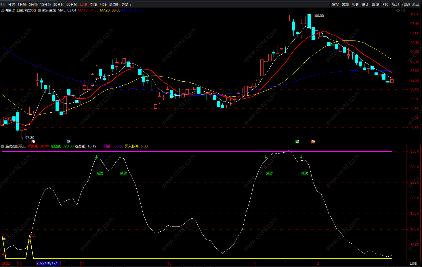 财富池指标公式网(www.cfchi.com)提醒您:指标公式是通过数学逻辑角度编写而来,仅是股票分析环节中的一个辅助工具,对股票选股效率和分析便捷上起到一定的作用,股市是具有不确定性和不可预测性的,请正常对待和使用指标公式!