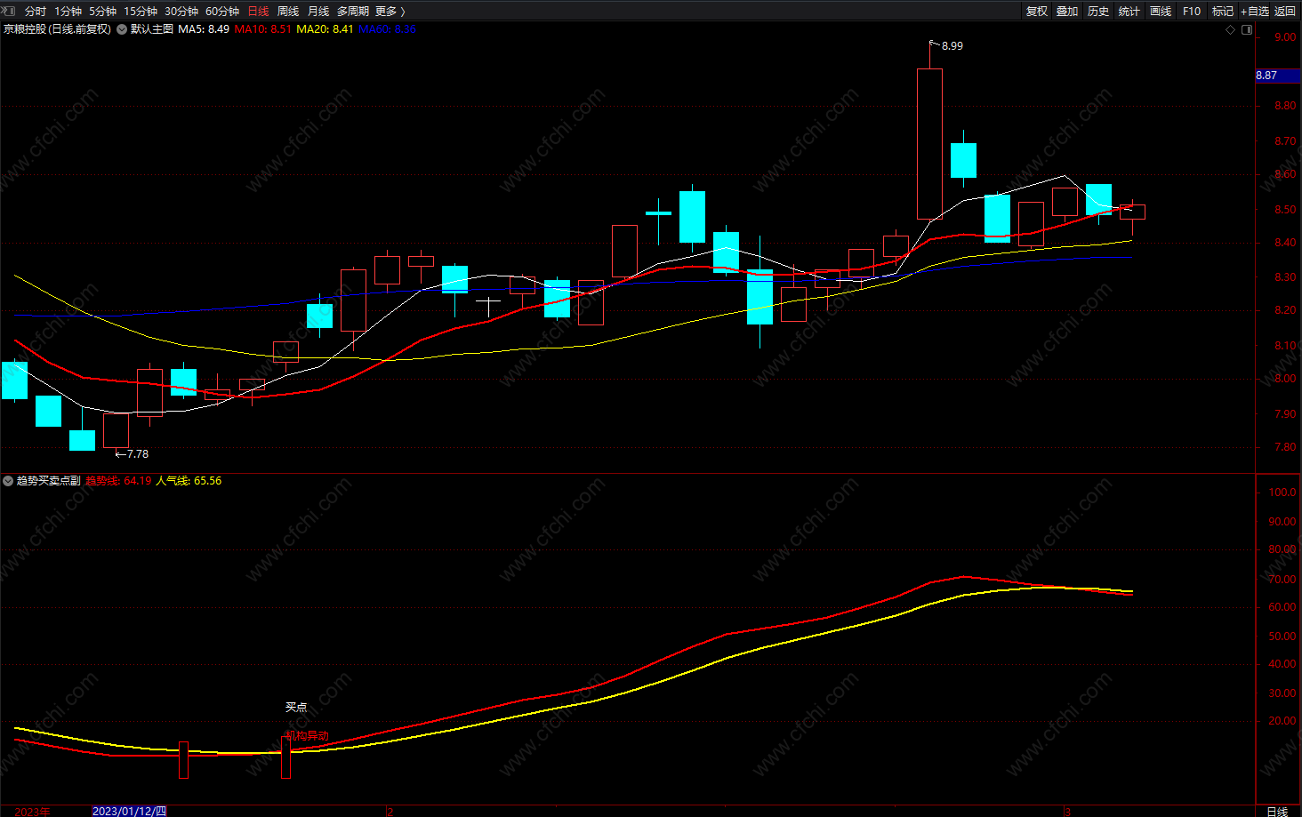精华版:分时主力吸筹:增加了买入点提示,效果不错。手机电脑都可用。
