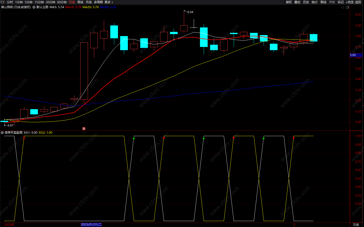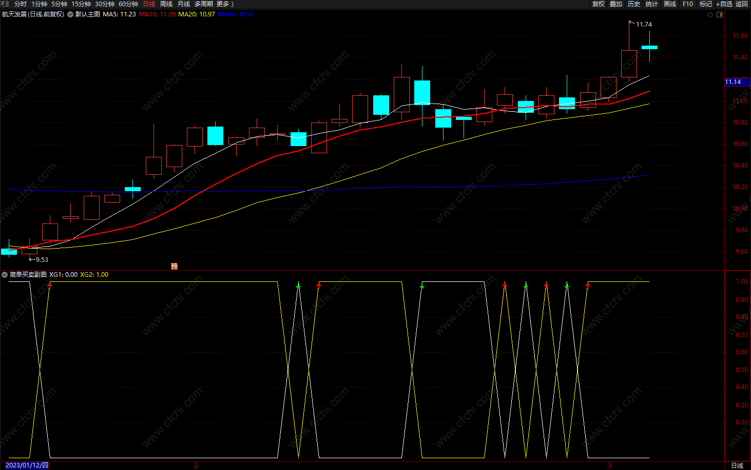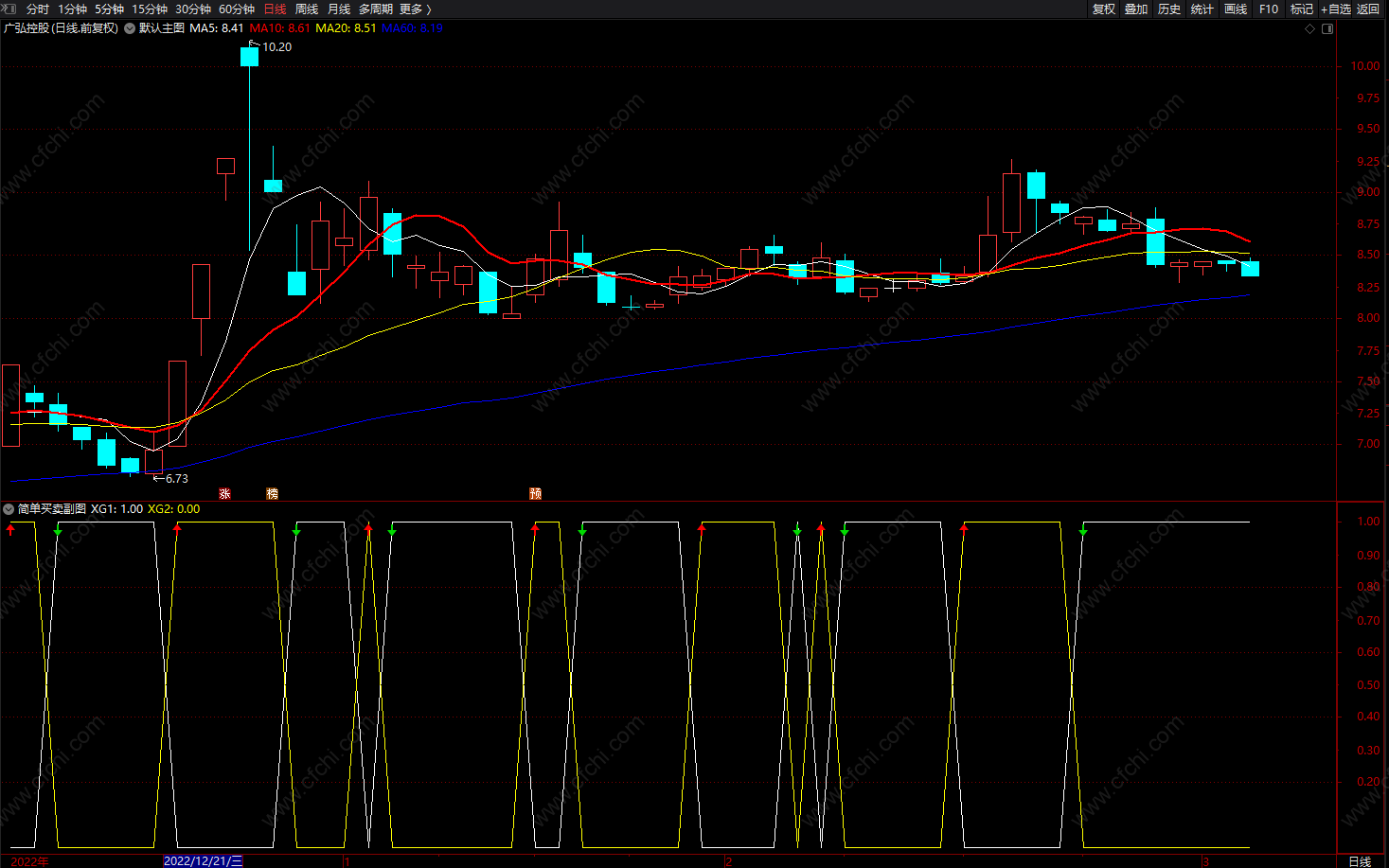 XG2上穿XG1时红箭头买入 XG2下穿XG1时绿箭头卖出