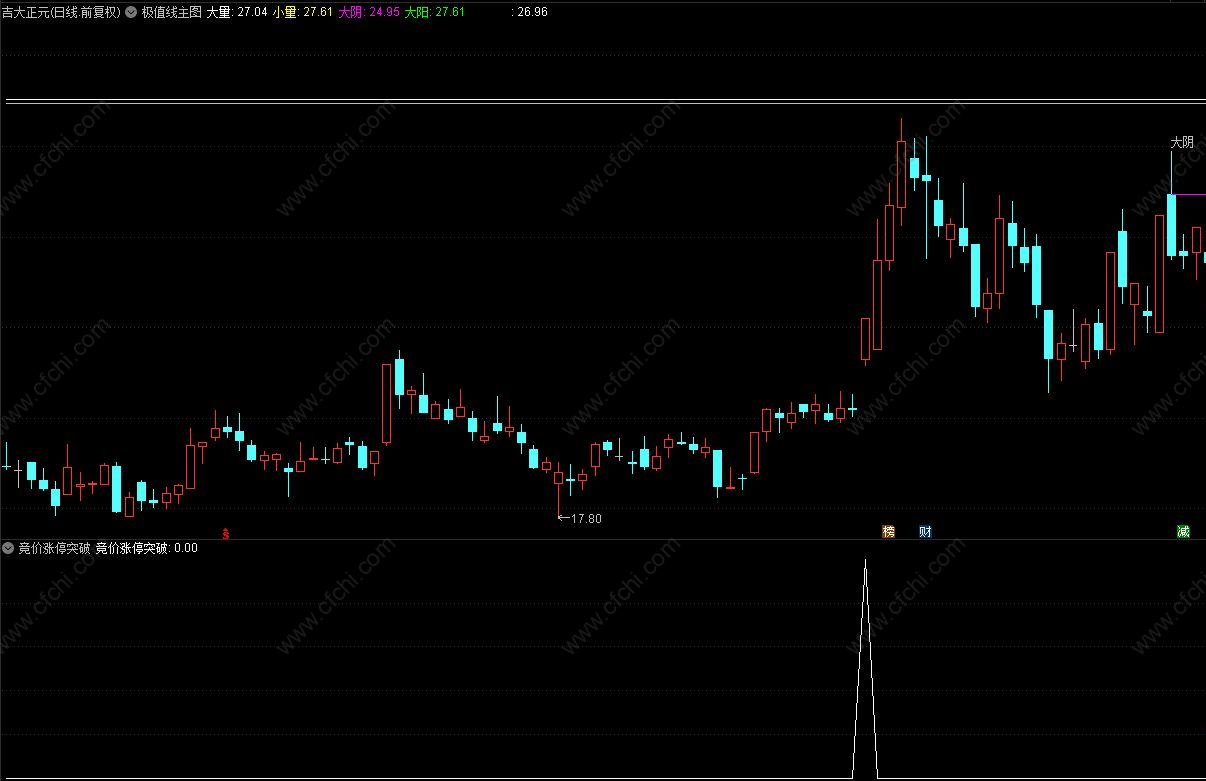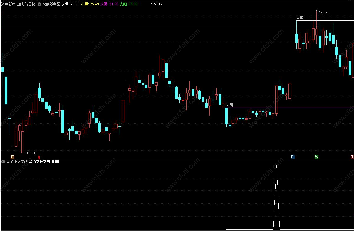 (通达信竞价涨停板突破极值 副图 选股 全天可用)