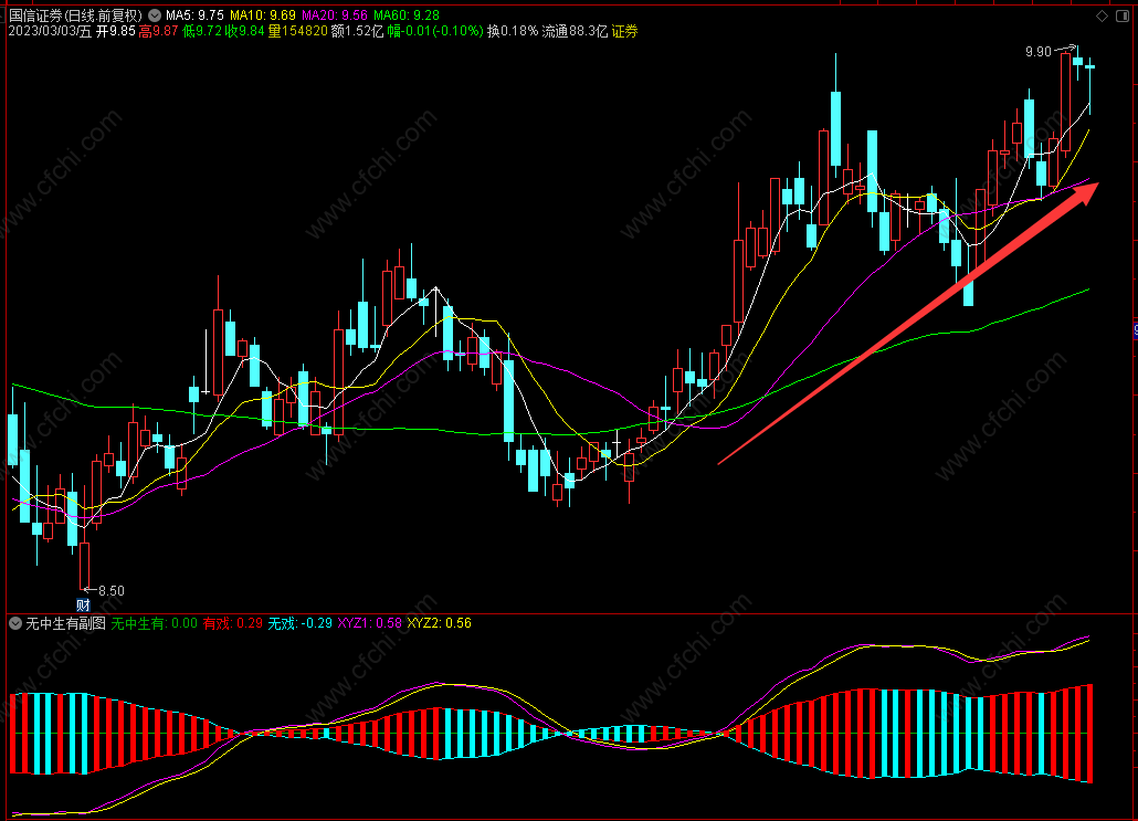 (通达信无中生有副图指标,红柱由短变长时为很好的介入点,源码分享!)