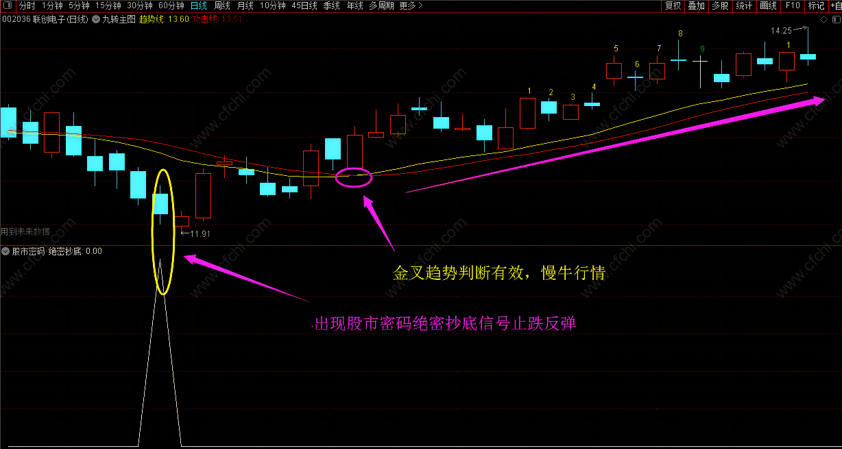 (【通达信】股市抄底密码副图选股指标公式,低位精准抄底指标/PC手机可用)