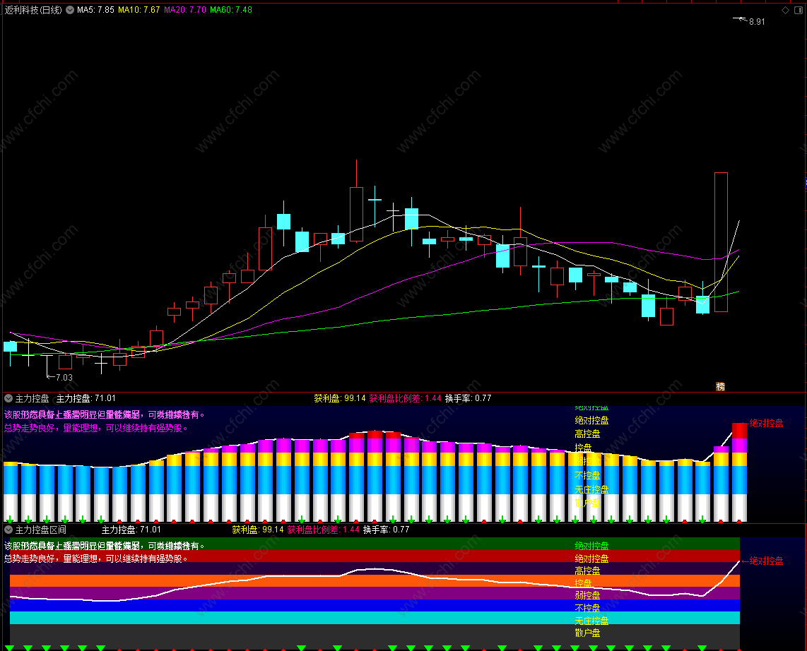公式用到:CAPITAL(当前流通股本)、WINNER(CLOSE)(获利盘比例)、CURRBARSCOUNT(求到最后交易日) 函数,这些都不是真正意义上的未来函数;不喜勿用! 谢谢!