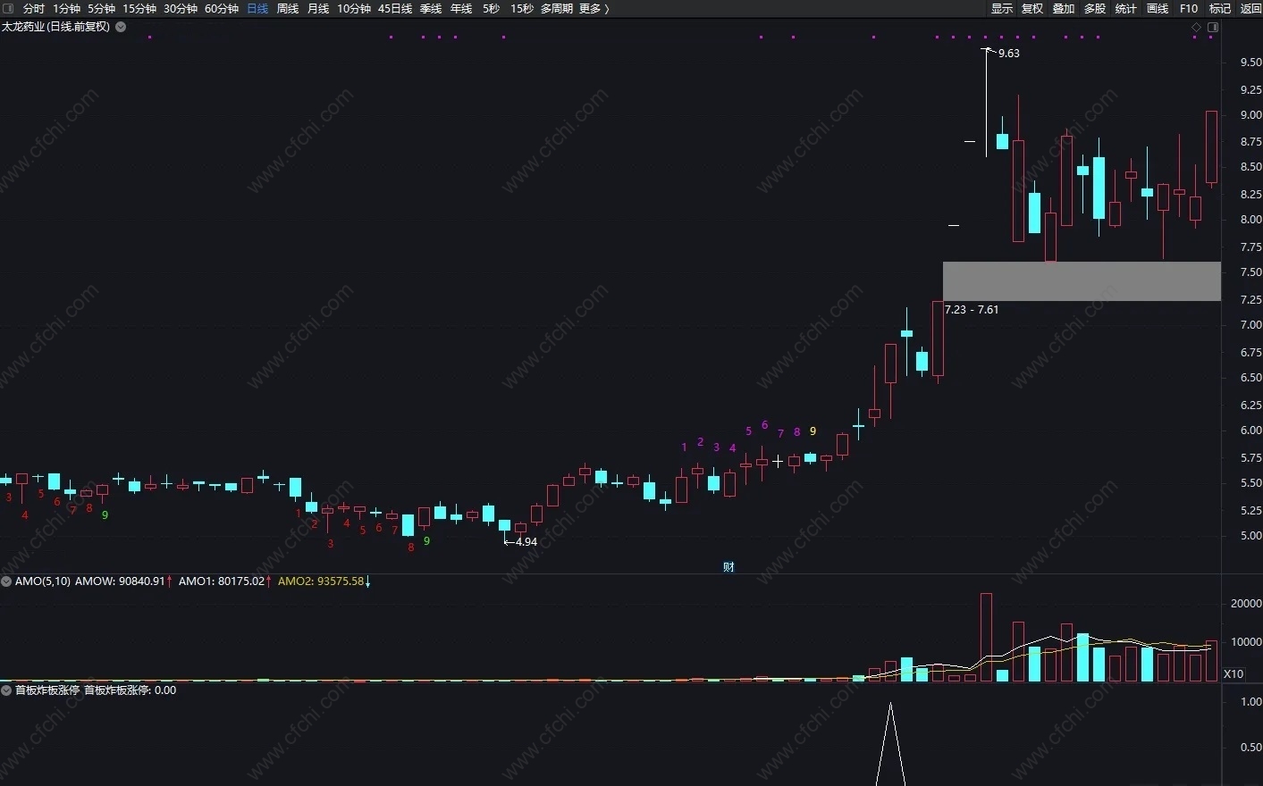 出信号后操作:第二天 1、打板进。2、不涨停可尾盘买,不跌破炸板那天的最低价持有,或不及你的预期止损。