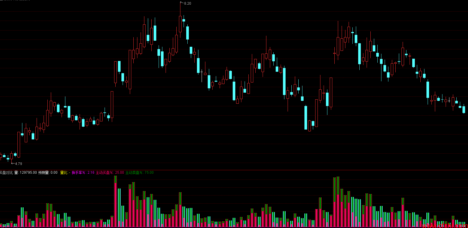 主动卖盘%:ABS(主动卖盘/VOL*100),COLOR008800,NODRAW;