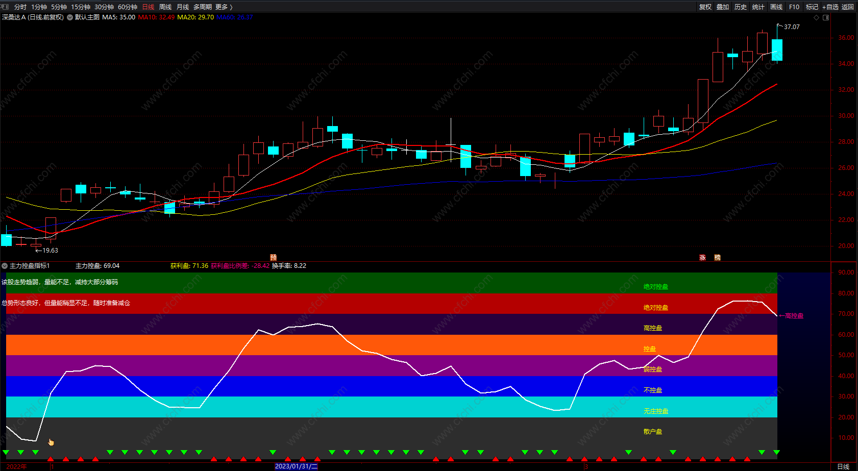 DRAWTEXT(主力控盘<K20 AND 主力控盘>=K0 AND ISLASTBAR,主力控盘,'---散户盘'),COLORYELLOW;
