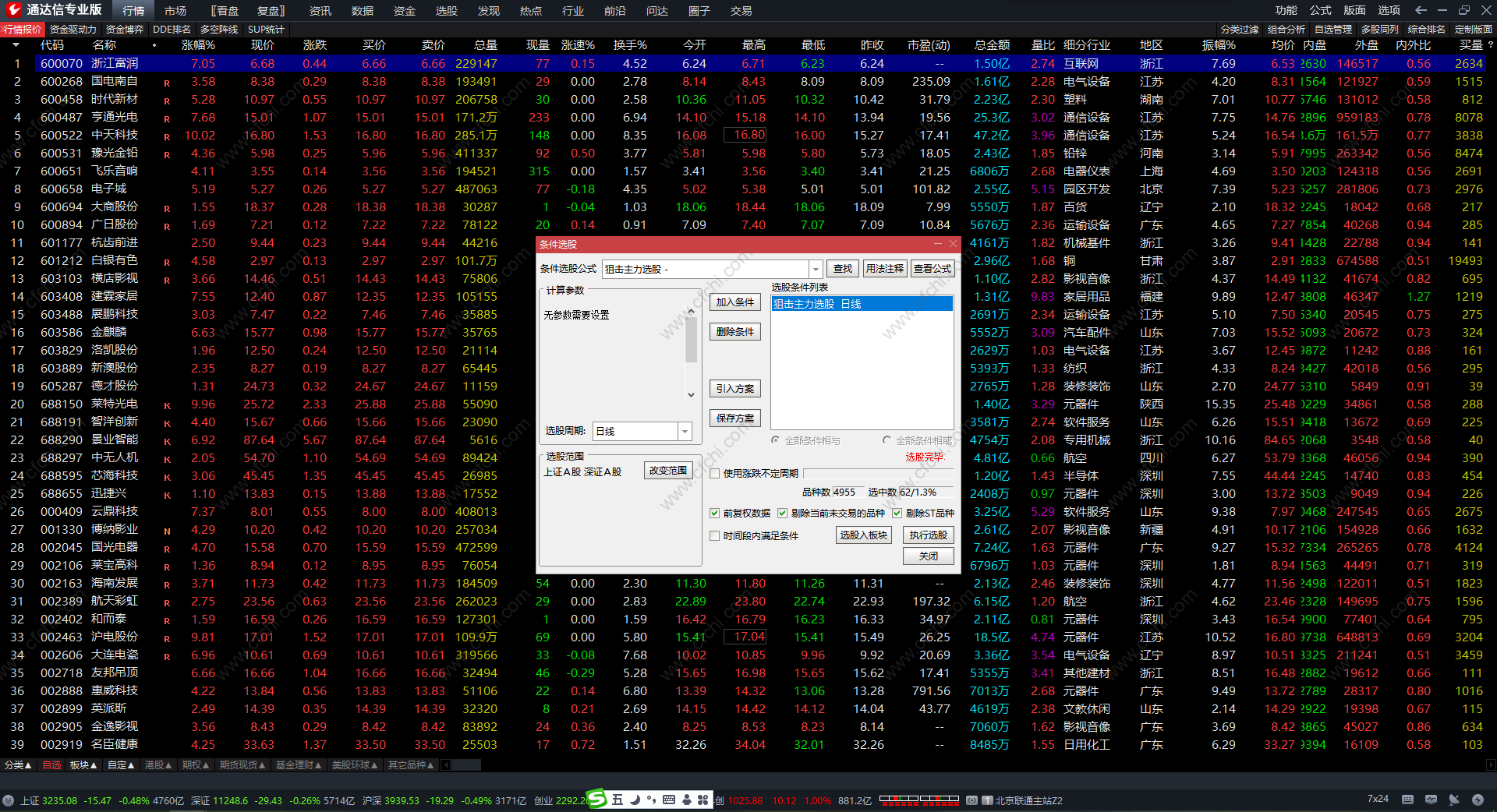 附件包含条件选股+副图指标源码!