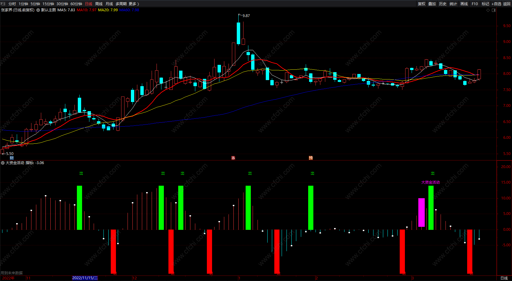股票macd量柱买卖指标 通达信大资金活动买卖提示 副图 源码