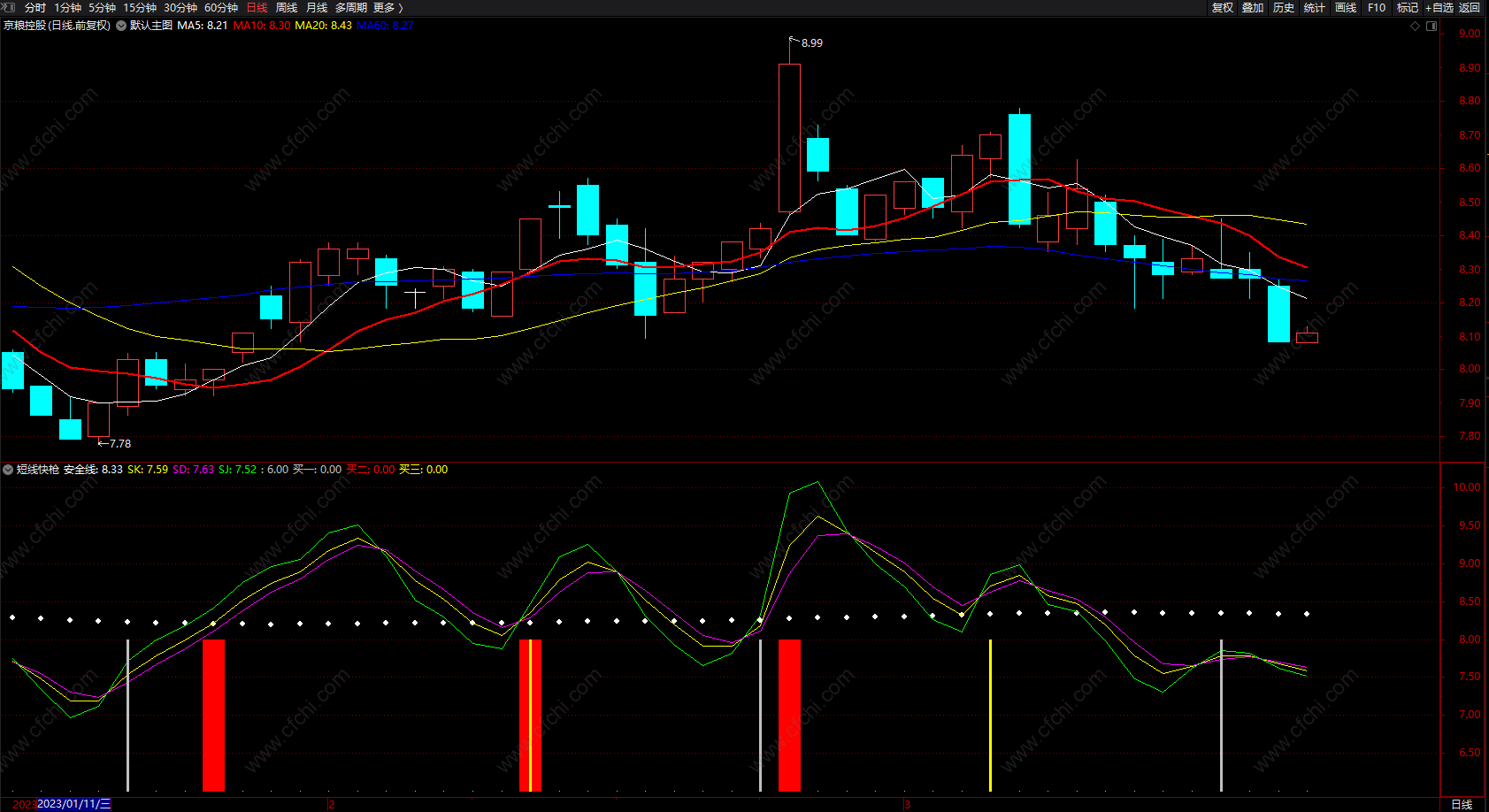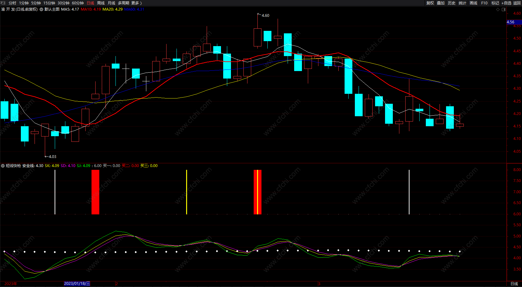(股票超短线快枪副图指标 通达信安全线提示买卖点指标 源码)