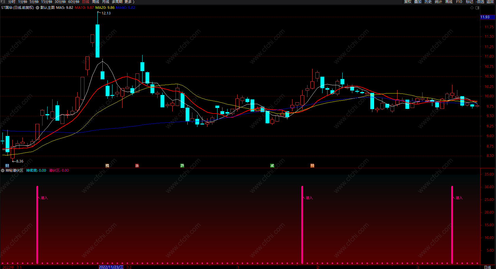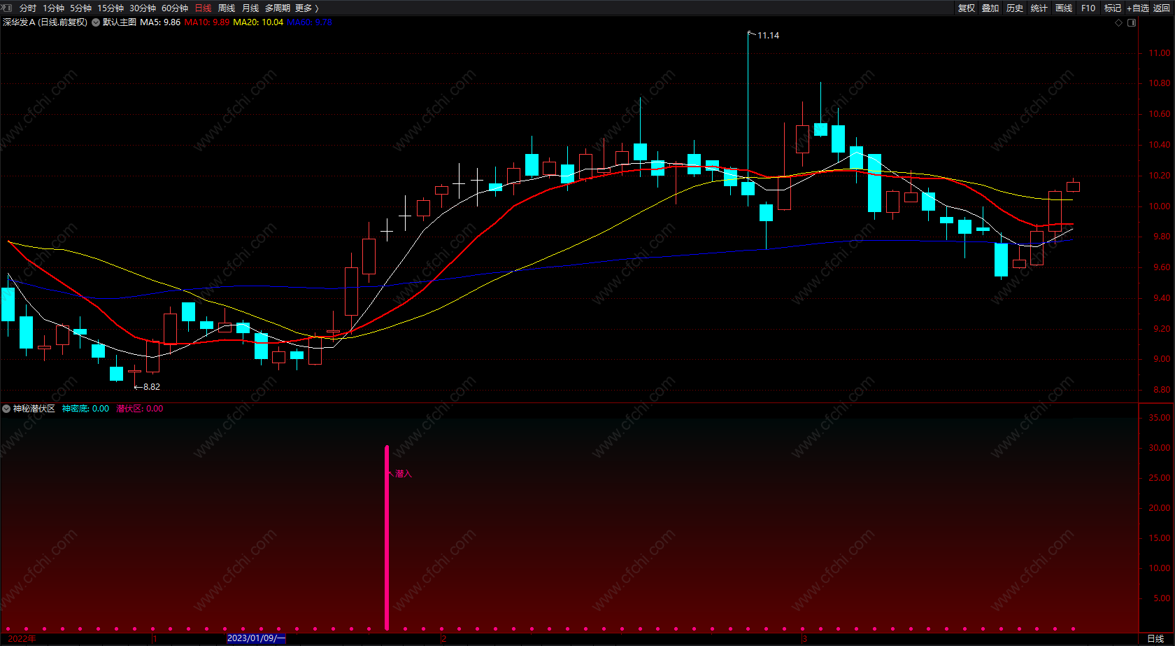 '↖潜入'提示买入点,'↖底现'提示可加仓!