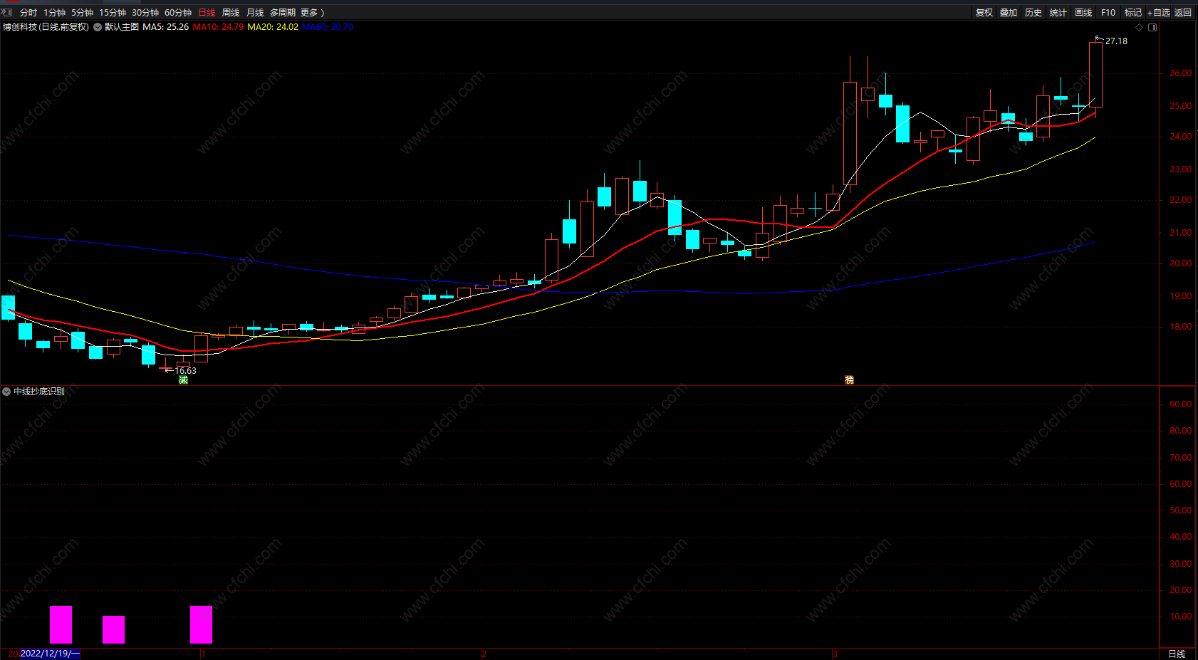 中线抄底识别 通达信超爽全仓买入必涨指标公式 副图 无未来 源码