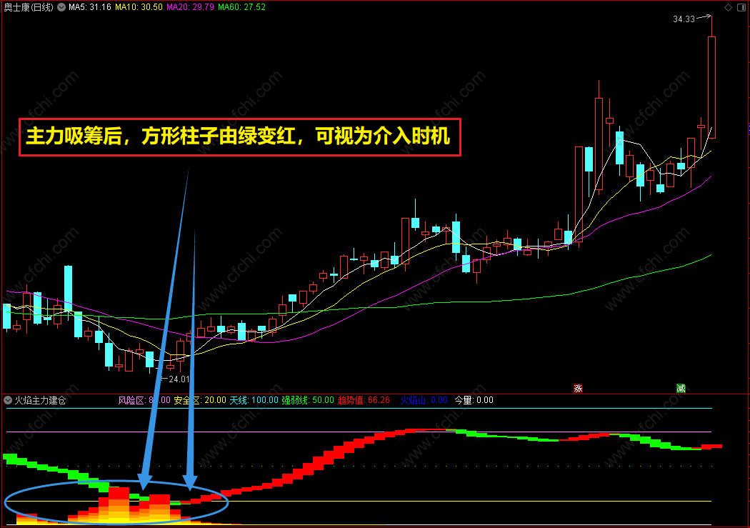 (通达信火焰主力建仓副图指标,洞察主力吸筹状态,源码分享)