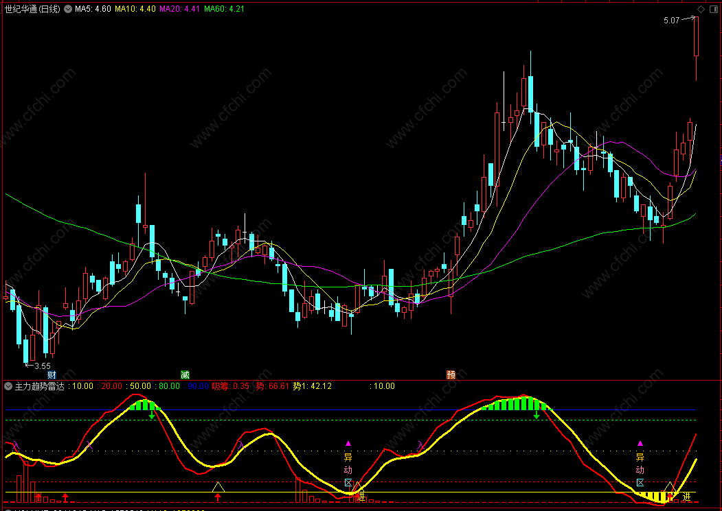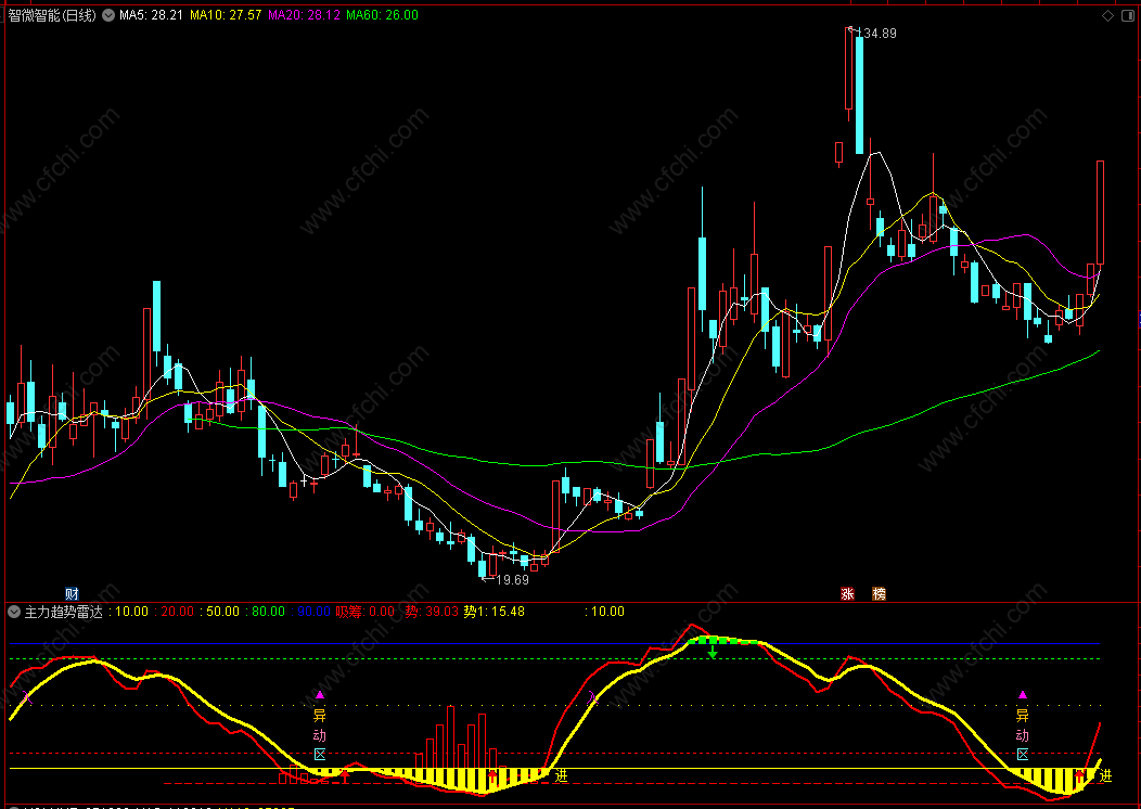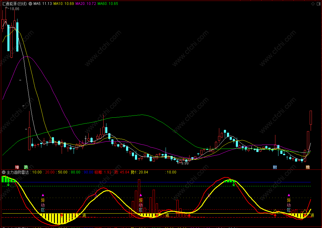 主力趋势雷达副图指标,波段操盘抄底神器;这是一个用来监控主力动向很优秀的副图指标,出现异动区的时候就找买点,上方出现绿色箭头的时候就注意控制风险,值得我们拥有;