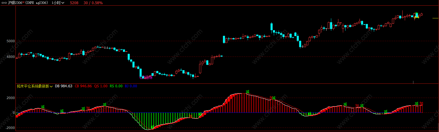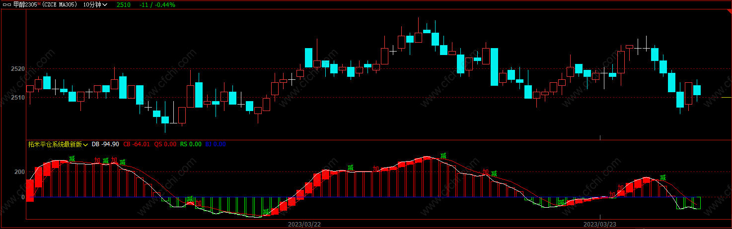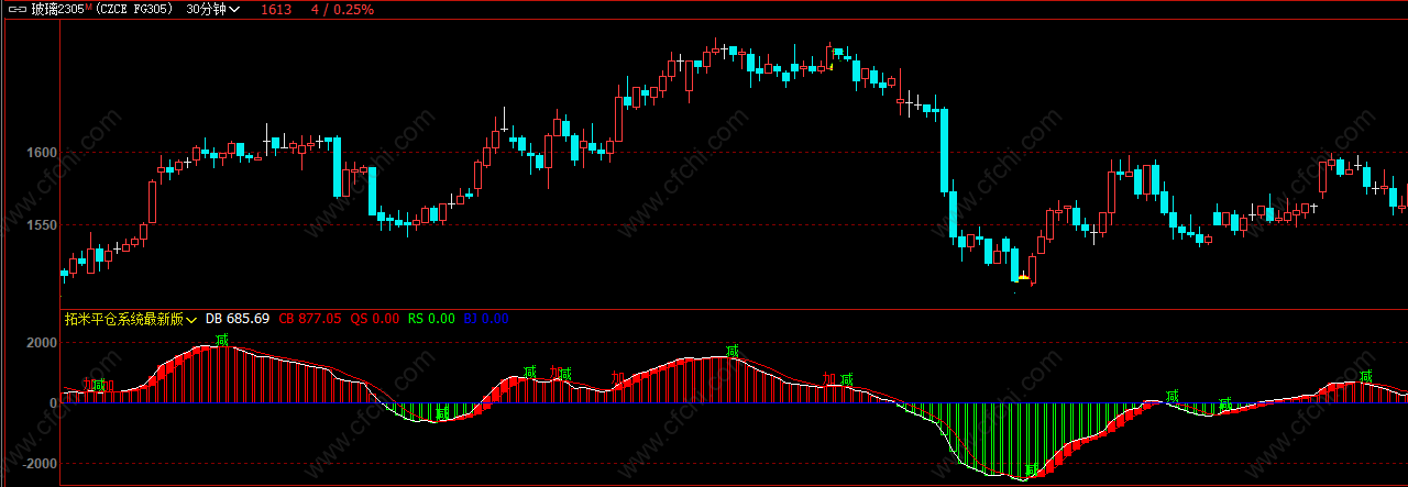 (文华财经软件指标拓米平仓系统最新版副图公式,出现方形柱体做多)