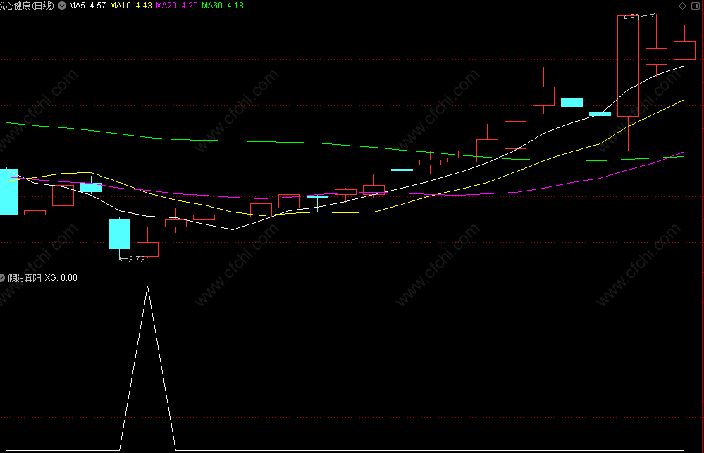 3、无论其后势是涨是跌,都有时间暗示。一般情况下,上升途中的“真阳假阴”,其后1-5天左右可能有中到大阳。