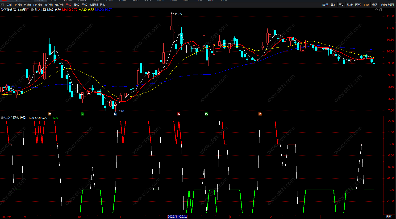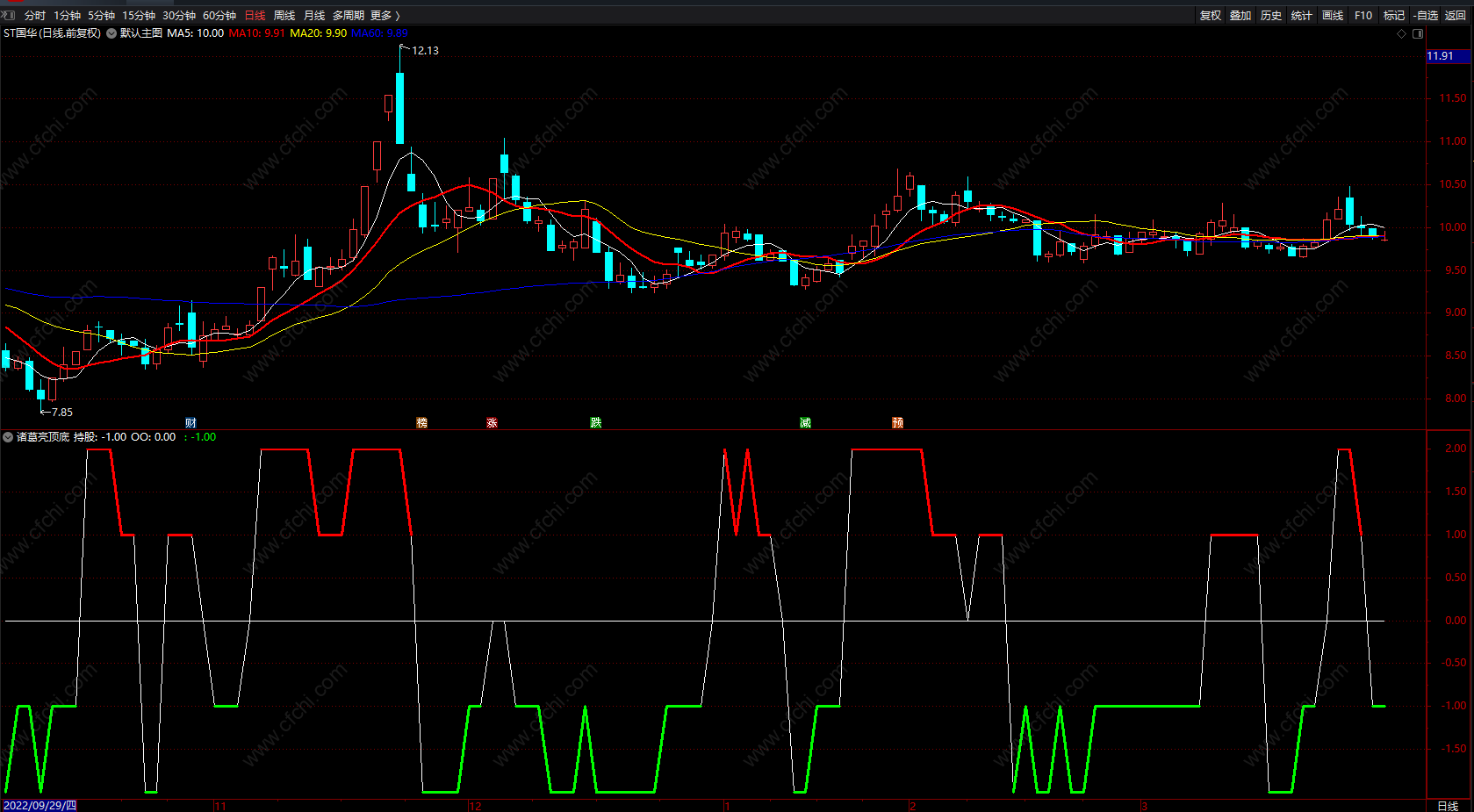 (诸葛亮顶底提示 通达信大盘顶底副图指标公式 源码 副图)