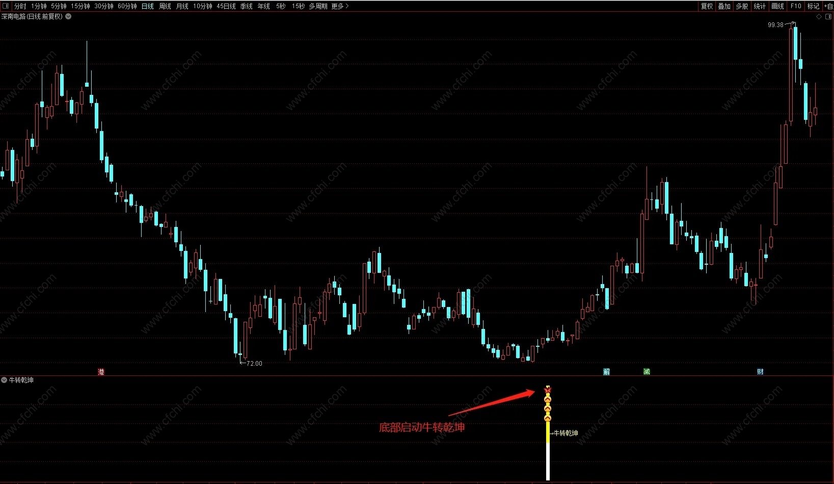 通达信【牛转乾坤】副图选股指标,大底小底反转信号,源码分享!