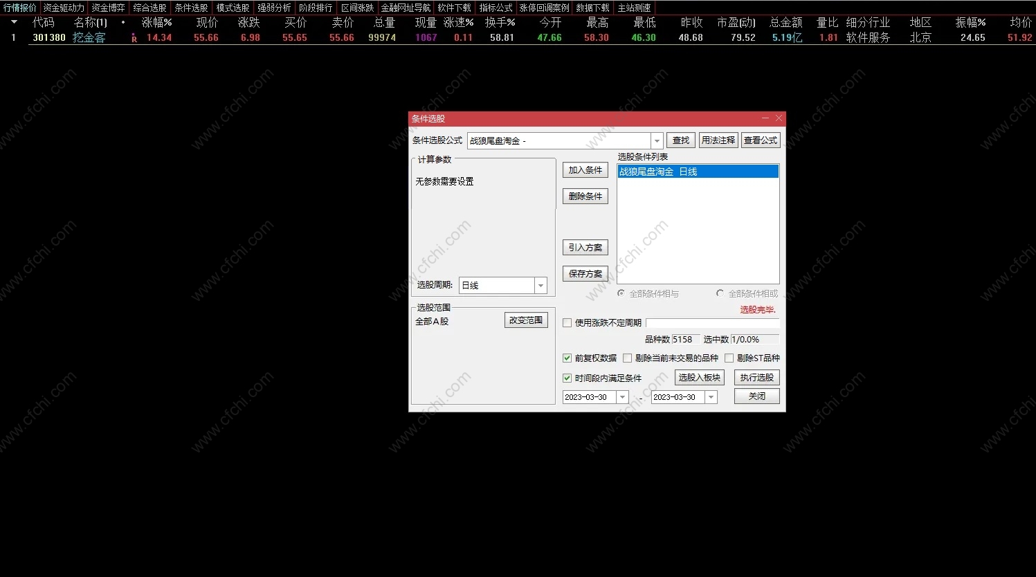 (【通达信】战狼尾盘淘金副图选股指标,尾盘买入,专抓20CM,源码分享)