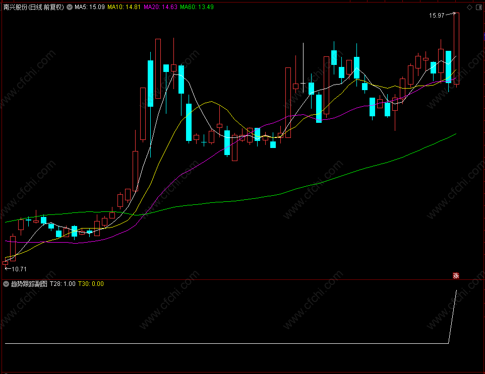 (【通达信】趋势跟踪副图选股指标,结合量能的配合上穿突破为主,源码分享)